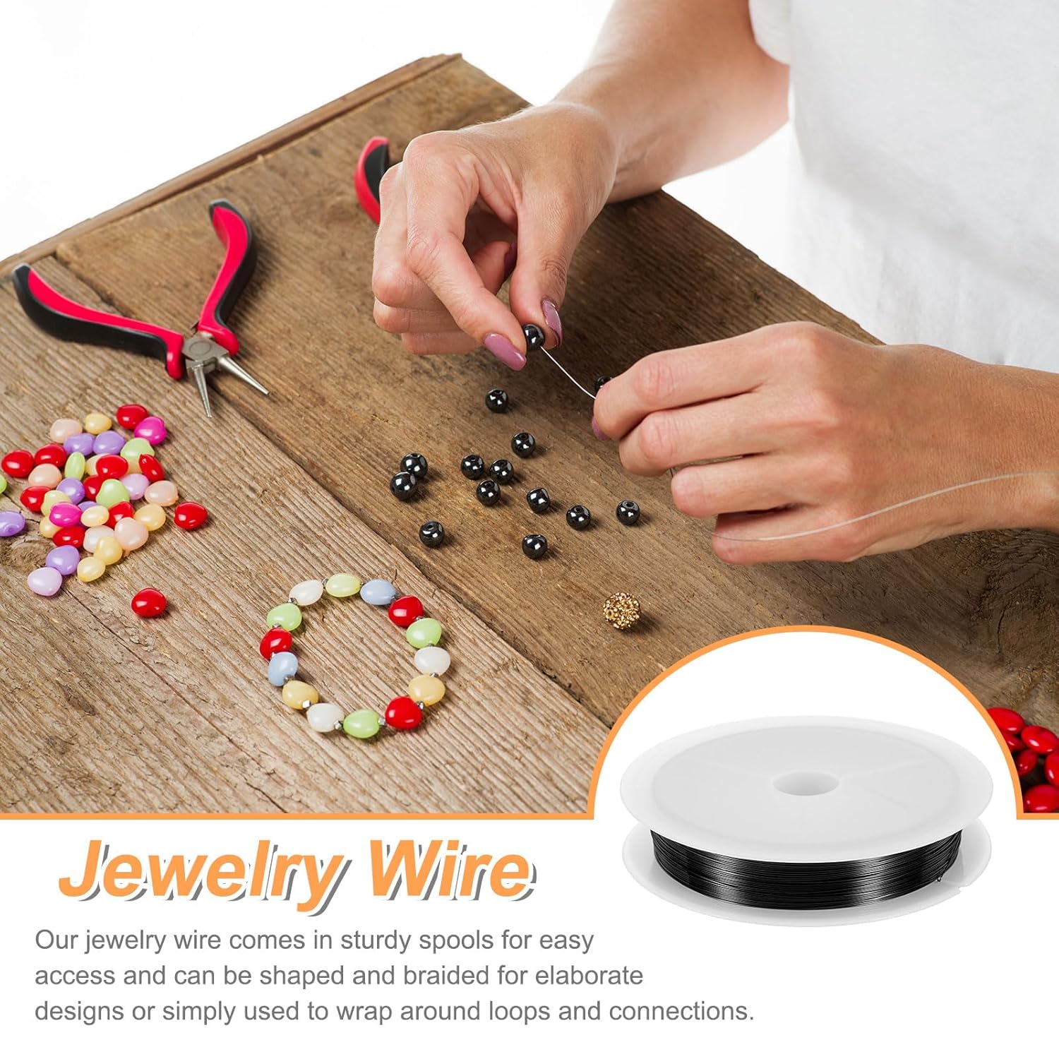 - Features - The jewelry wire is bendable and flexible, easy to use, and can be used with different types of beads, necklaces, bracelets, and other jewelry DIY projects. In addition, it is packaged in a sturdy spool, which is convenient to take out the metal craft wire and keep it neat and not messy.