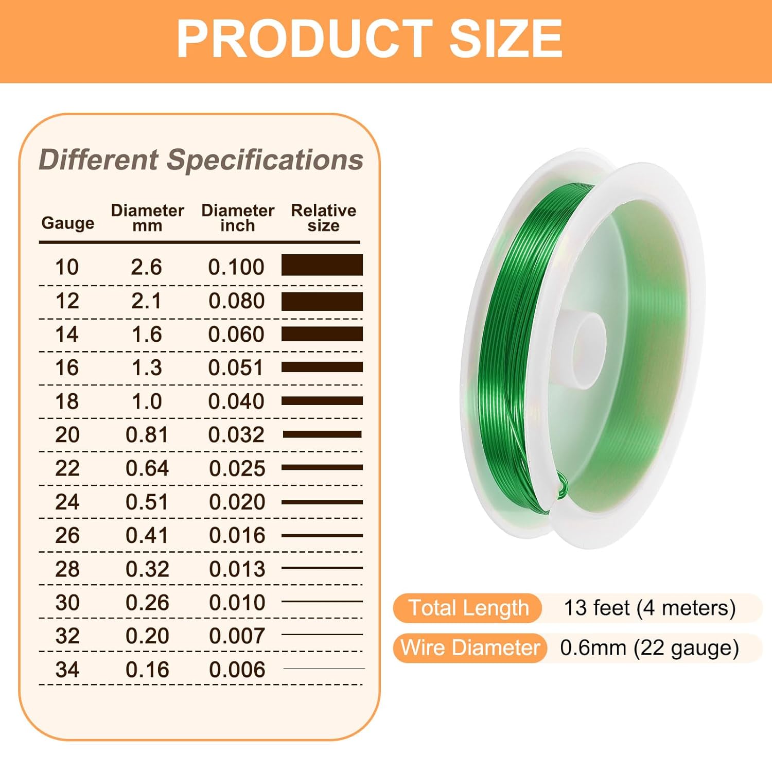 - Size - The diameter of the art wire is about 0.6mm (22 gauge) and 13 feet (4 meters) long. The art wire is suitable for jewelry making, beading, and jewelry repair.