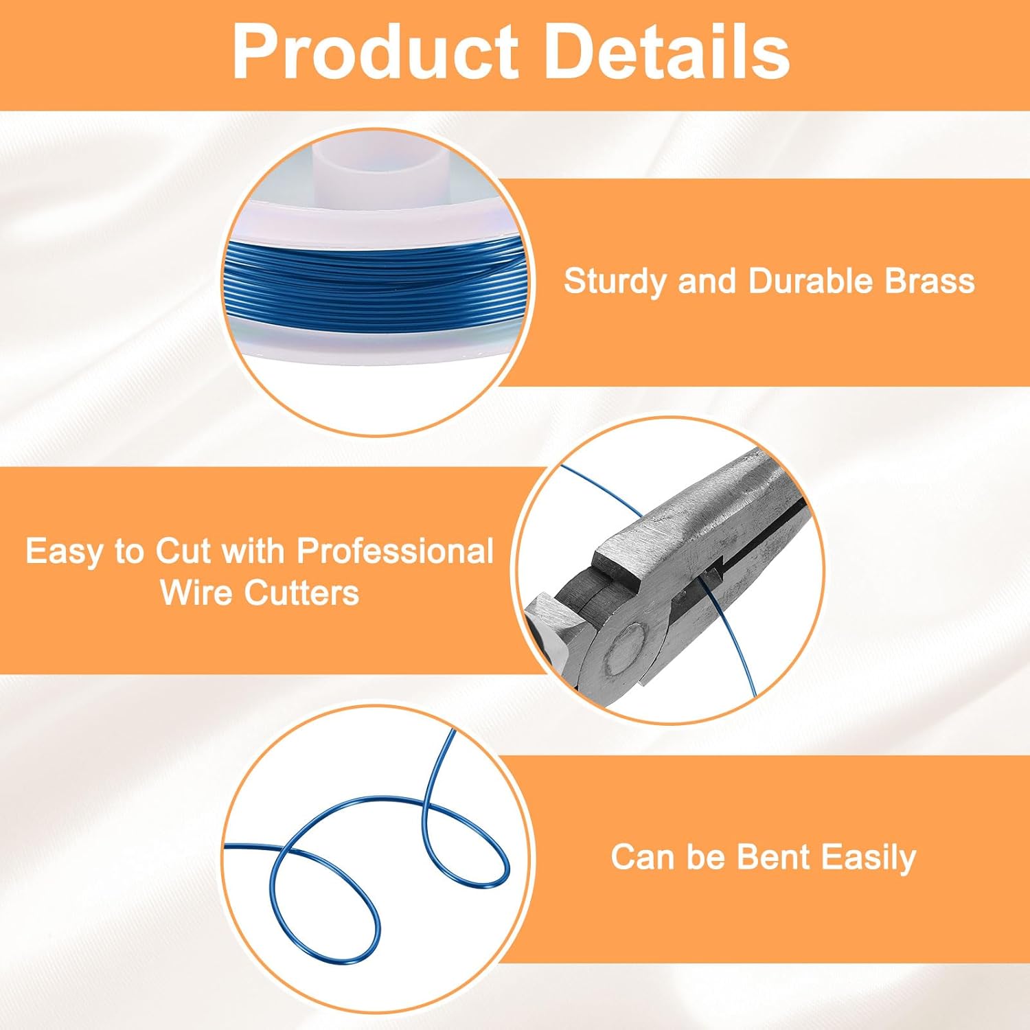 HARFINGTON 13ft Jewelry Wire, 22 Gauge (0.6mm) Brass Craft Soft Metal Tarnish Resistant Copper Beading Wire for Jewelry Making Supplies Crafting, Blue