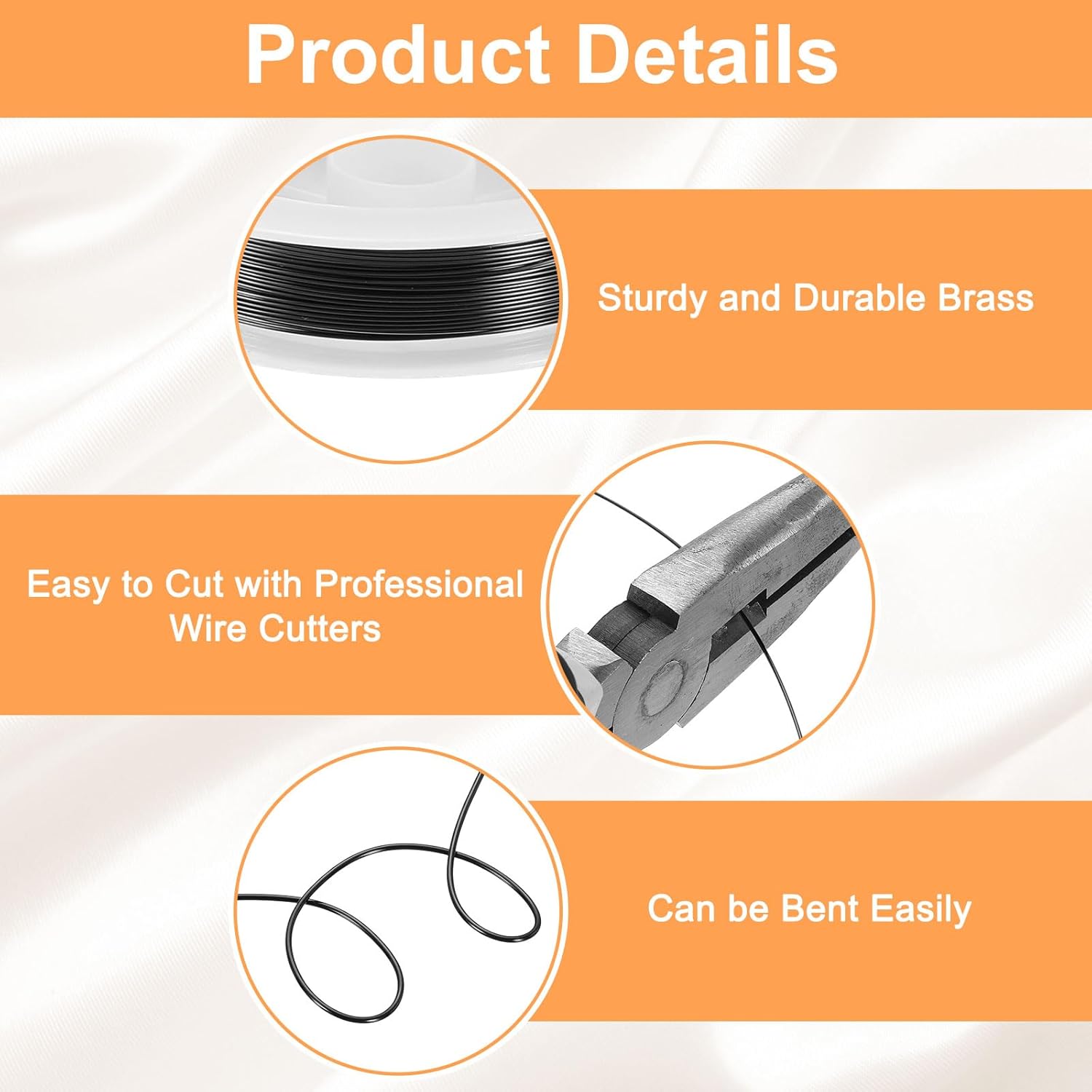 HARFINGTON 30ft Jewelry Wire, 26 Gauge (0.4mm) Brass Craft Soft Metal Tarnish Resistant Copper Beading Wire for Jewelry Making Supplies Crafting, Black