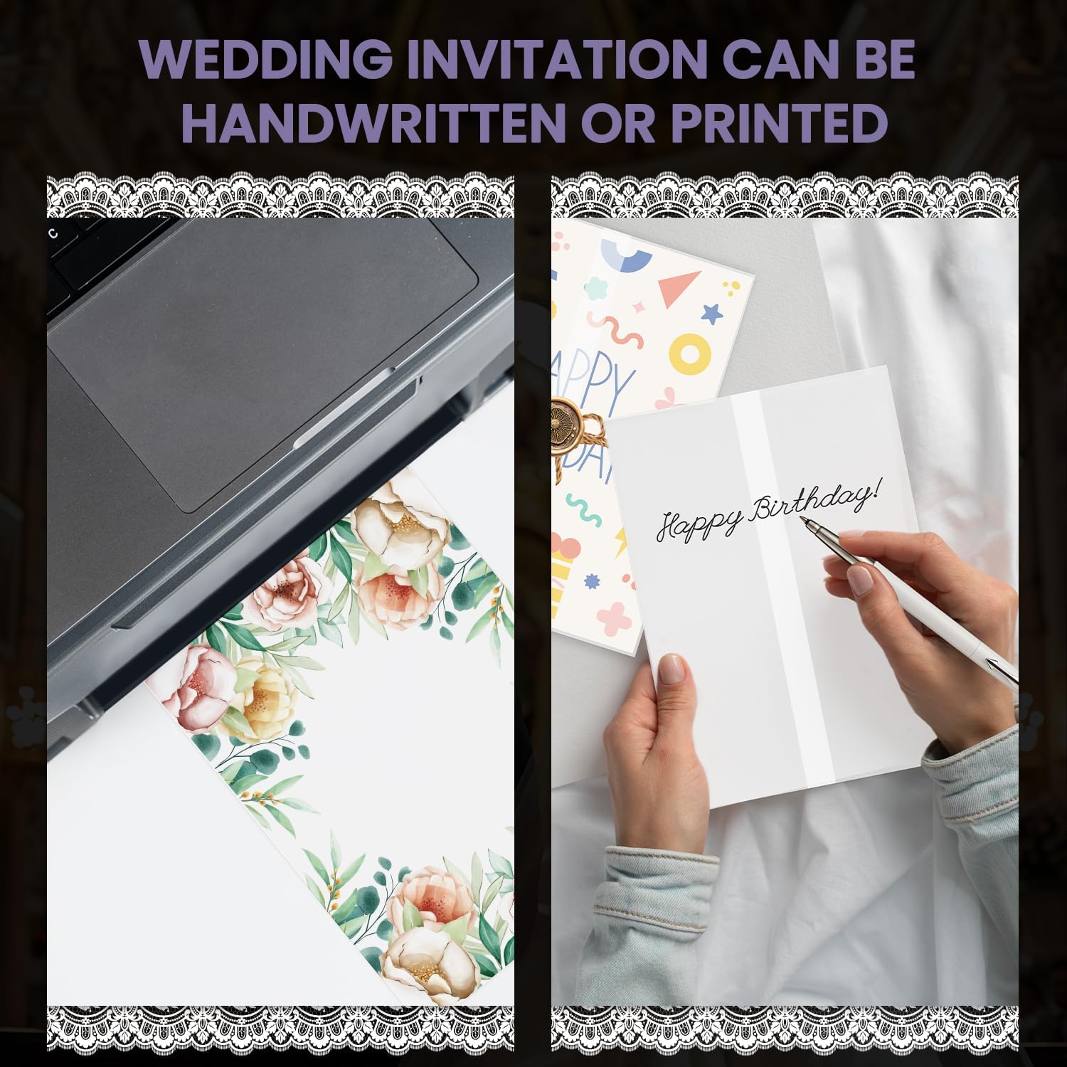 - High-Quality Vellum Jackets for 5x7 Invitations:Made with premium thick cardstock, these invitations work smoothly with 93 gsm vellum paper 5x7 for crisp, professional printing results on laser or inkjet printers. Pairing with vellum paper 5x7 jackets offers a sophisticated wrap design that feels luxurious. For added layering, combine them with vellum paper for invitations to create visual depth. These also match beautifully with 5x7 vellum jackets for invitations for a polished, DIY finish.