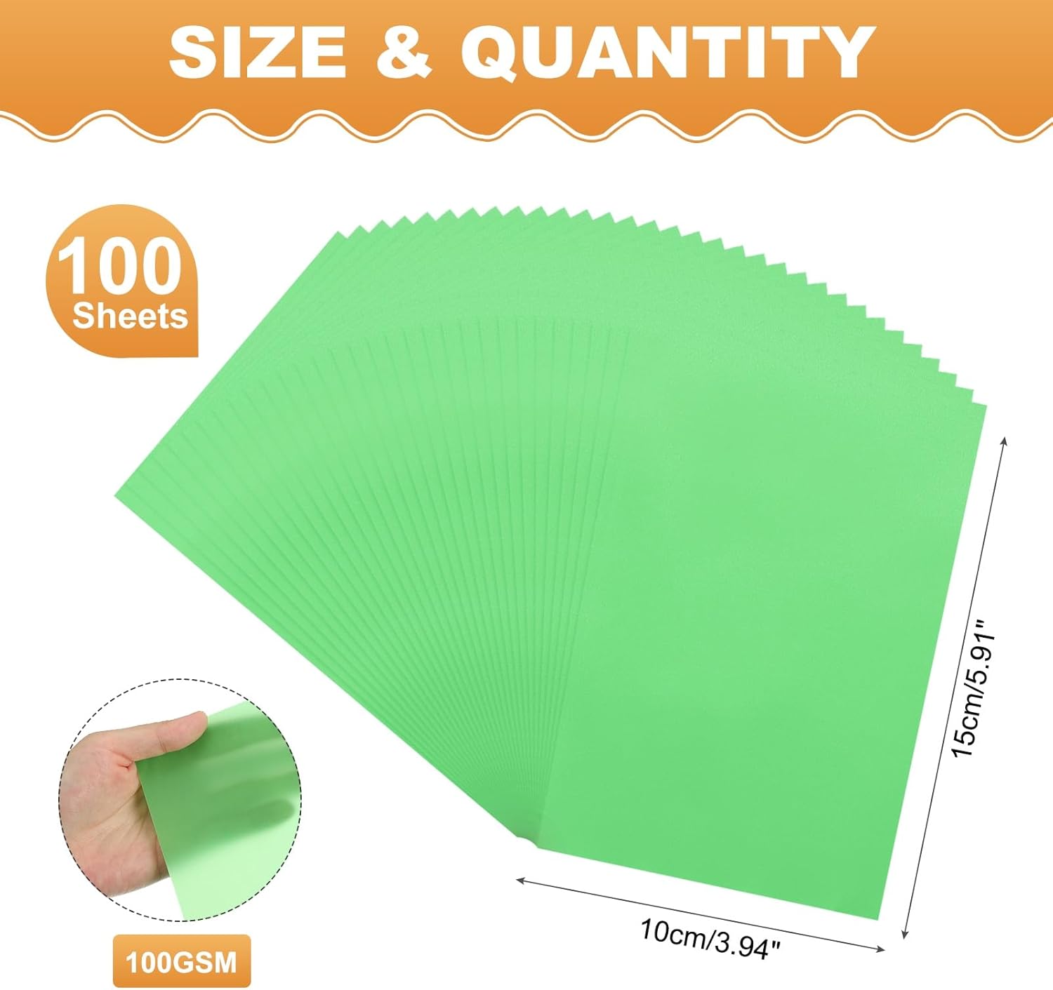 - Paper Gram Weight: 100gsm; Total Size: 3.94" x 5.91" / 10cm x 15cm (W*L) ;Material: Wood pulp; Color: Green; In the package : 100 Sheets x Colored Vellum Paper