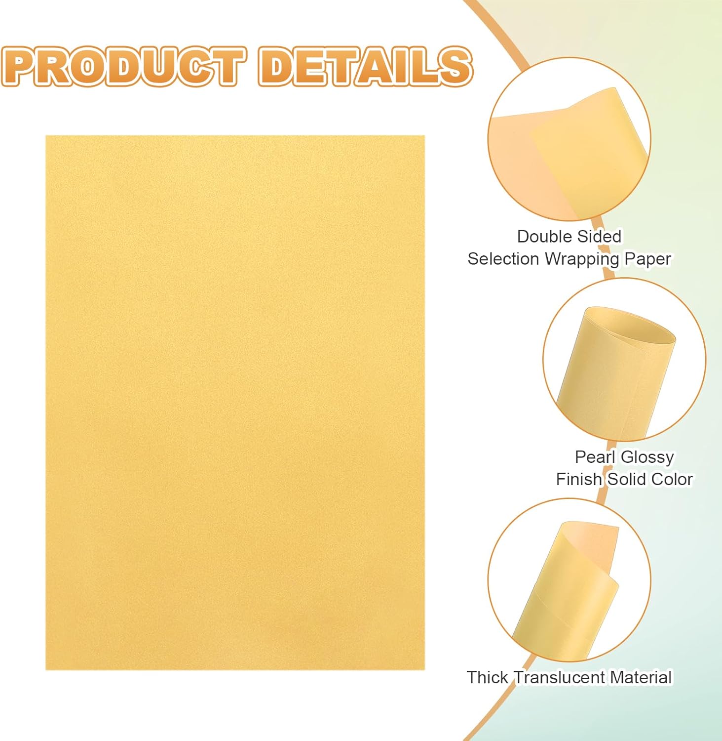 - Paper Gram Weight: 100gsm; Total Size: 5.87" x 8.27" / 14.9cm x 21cm (W*L) ;Material: Wood pulp; Color: Bright Gold; In the package : 100 Sheets x Colored Vellum Paper