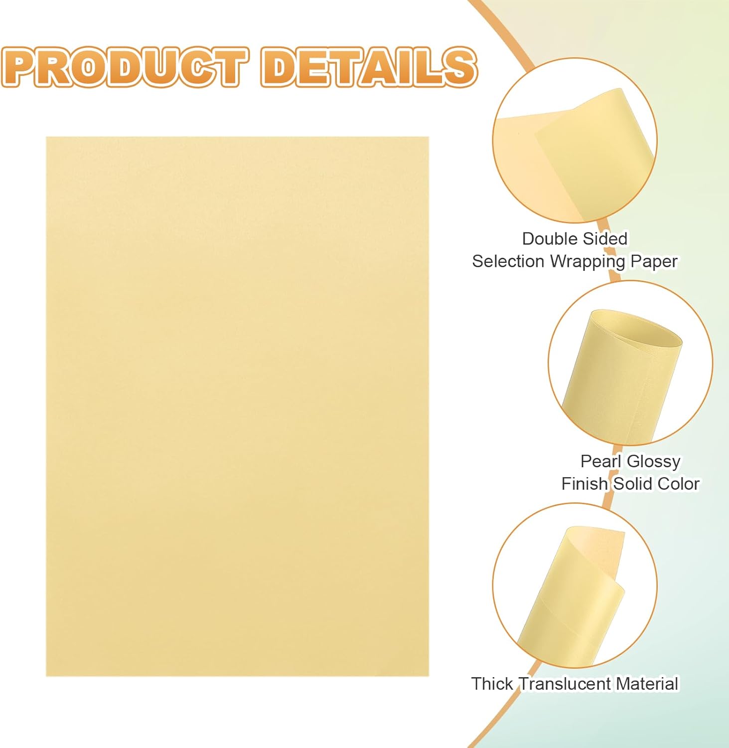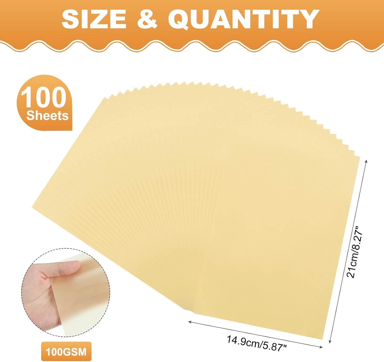 - Paper Gram Weight: 100gsm; Total Size: 5.87" x 8.27" / 14.9cm x 21cm (W*L) ;Material: Wood pulp; Color: Gold; In the package : 100 Sheets x Colored Vellum Paper