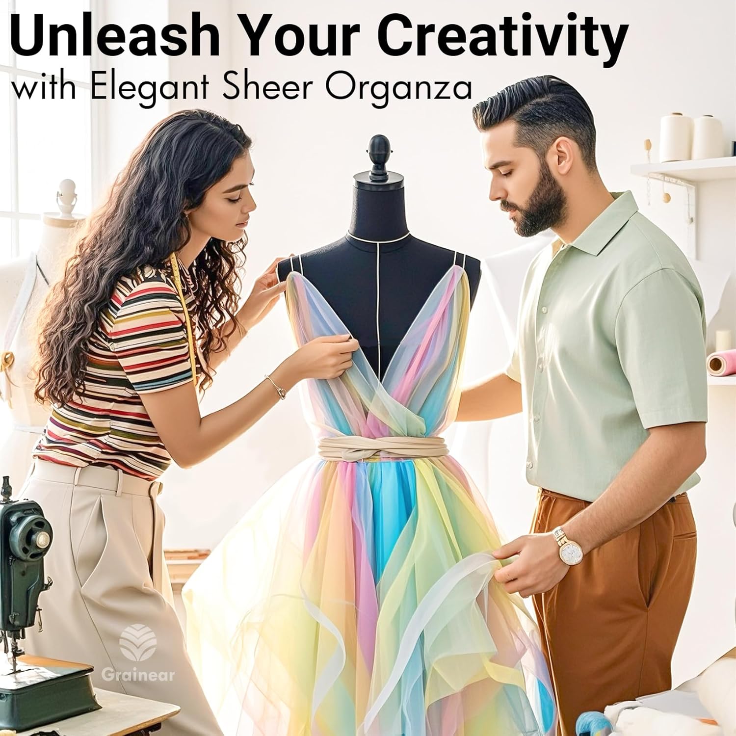 - Elegant & Ethereal Touch: Add a dreamy glow to your projects with this sheer organza fabric. With its delicate shimmer and airy texture, it's an elegant choice for weddings, event décor, floral wrapping, and more