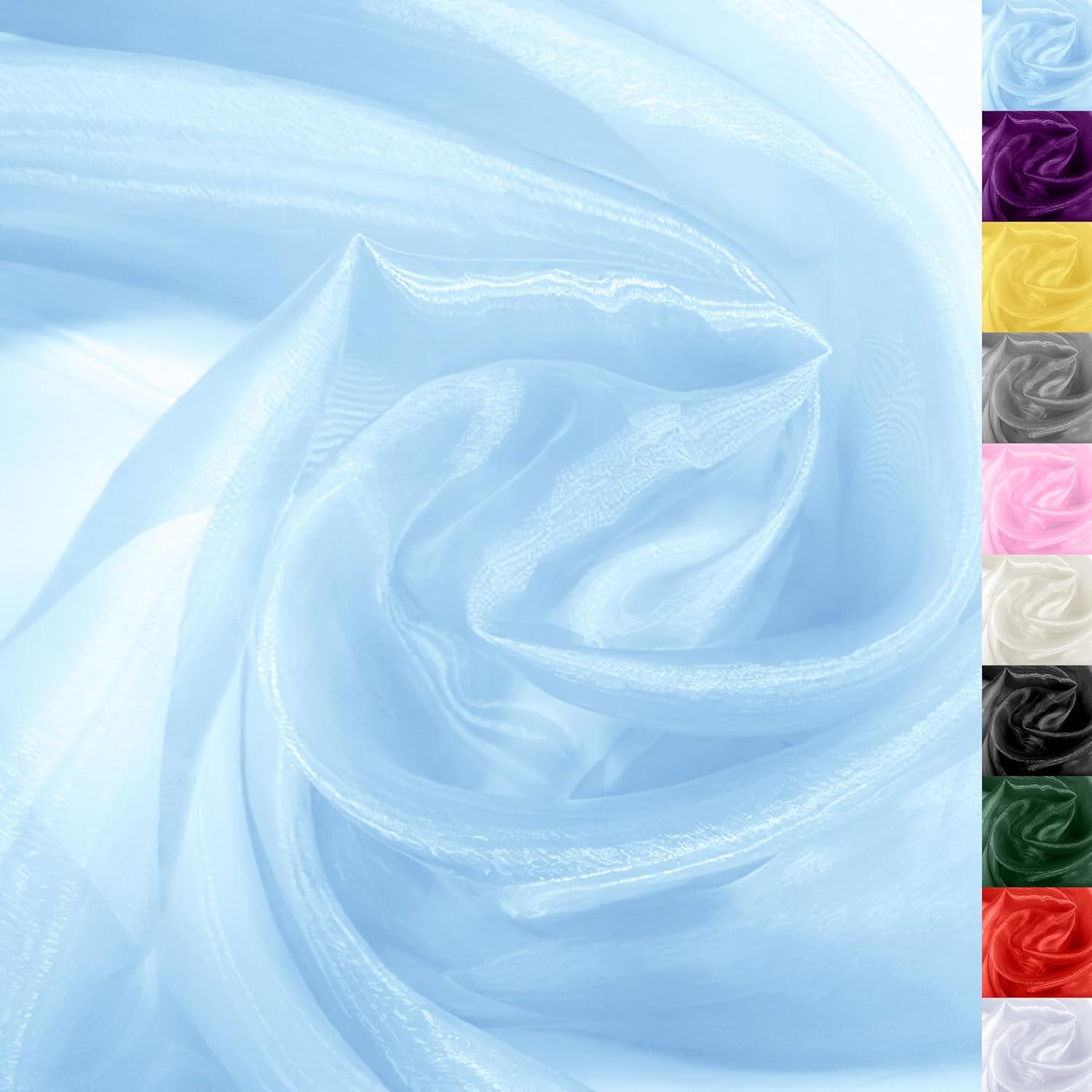 Baby Blue Crystal Organza Fabric – 16" x 5 Yards Lightweight Sheer Tulle for Bows, Tutus, Table Runners, Gift Wrapping, Crafts & DIY Sewing (Folded Package)