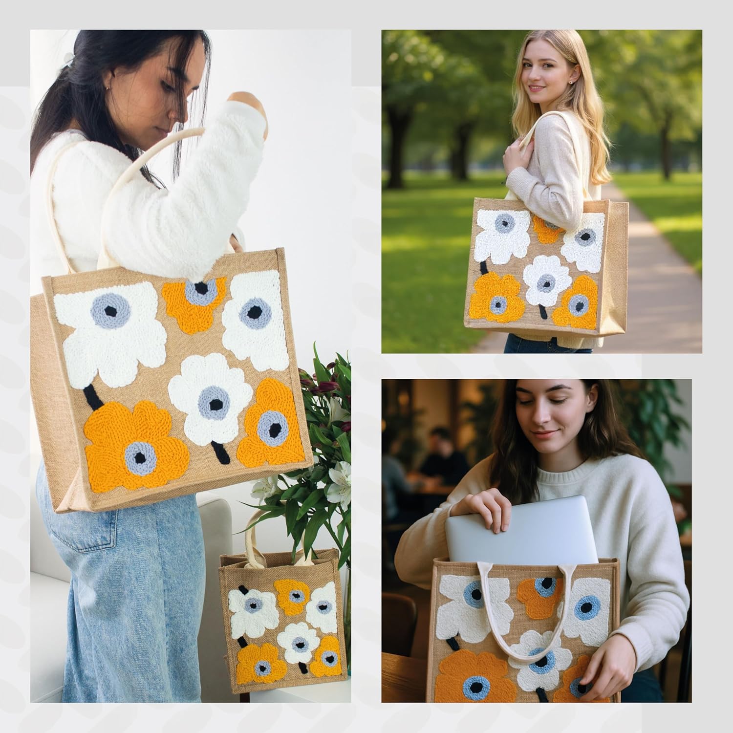 - LARGER, FUNCTIONAL DESIGN FOR DAILY USE – Unlike other punch needle kits that only offer a decorative result, this kit includes a large, reusable tote bag that’s perfect for groceries, books, or casual outings. Experience the joy of crafting a personalized bag that’s both beautiful and practical. It’s more than a project—it’s a bag you’ll actually use