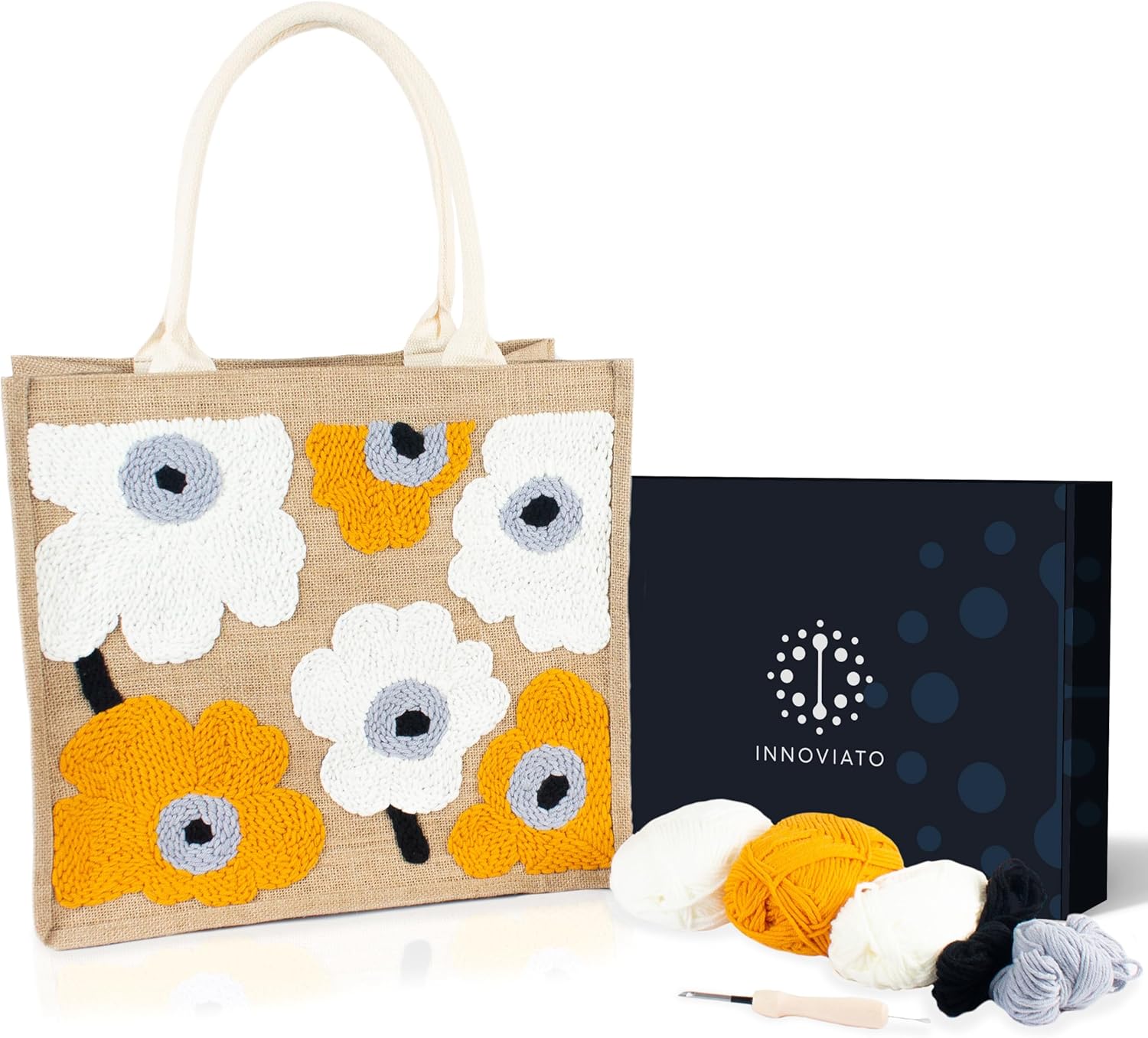 INNOVIATO Punch Needle Kit – Punch Needle Kits Adults Beginner – Big & Funtional Embroidery Set – Craft Kits for Adults – Embroidery Kit Beginner – DIY Tote Bag – Reusable Tote – Handmade Gift Idea