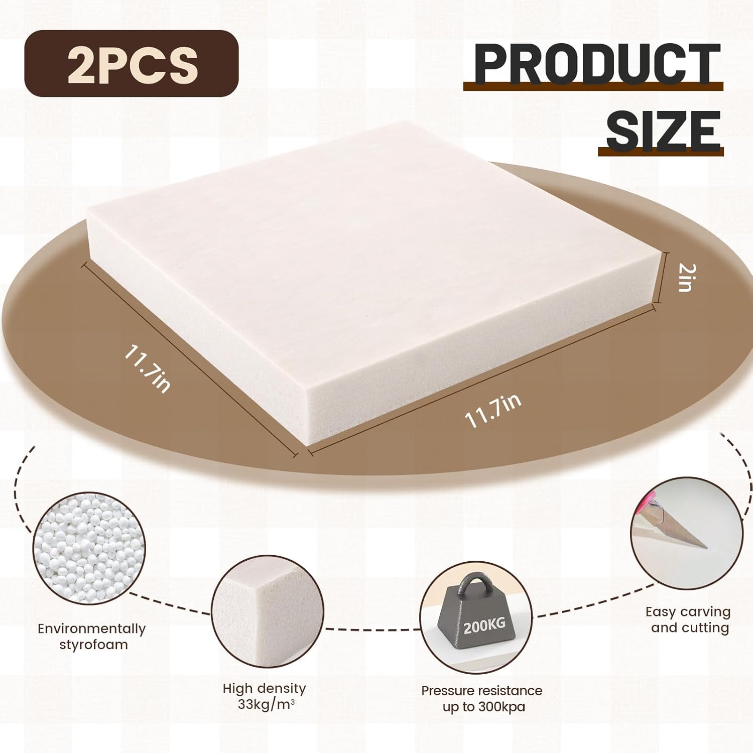 Gvereld High Density XPS Foam Board, 2 Pack 11.7x11.7X 2in Polystyrene Craft Foam Sheets, Rigid and Easy to Shape,DIY Modeling Art Projects, Party Decoration, Cosplay Prop Production, Heat Insulation