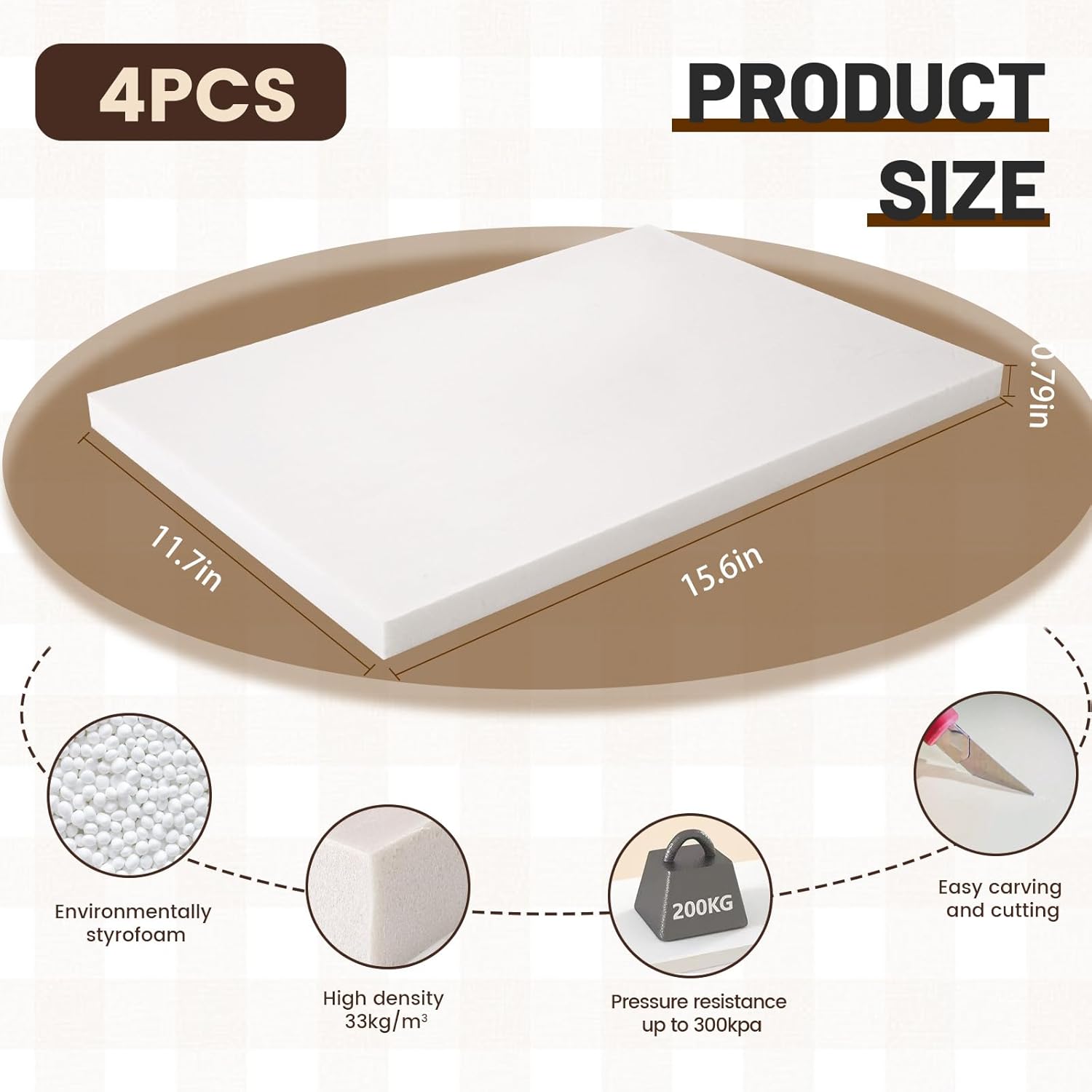 Gvereld High Density XPS Foam Board,4 Pack 15.6x11.7x0.79in Polystyrene Craft Foam Sheets, Rigid and Easy to Shape,DIY Modeling Art Projects, Party Decoration, Foam Cosplay, Heat Insulation