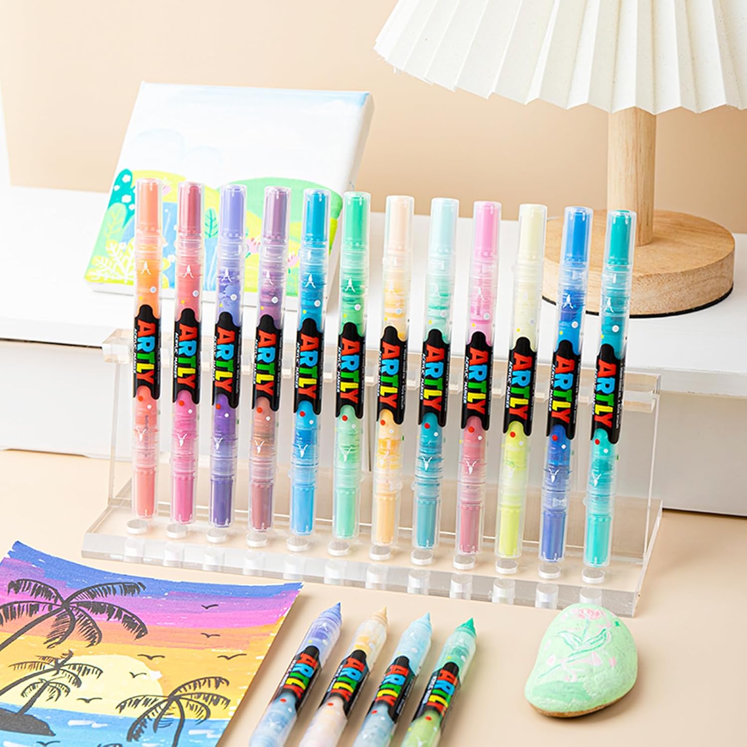 96 Colors Paint Markers, Dual-Color Acrylic Pens with Brush Tips, Double Tipped for Rocks & Art Supplies (48pcs/96colors)