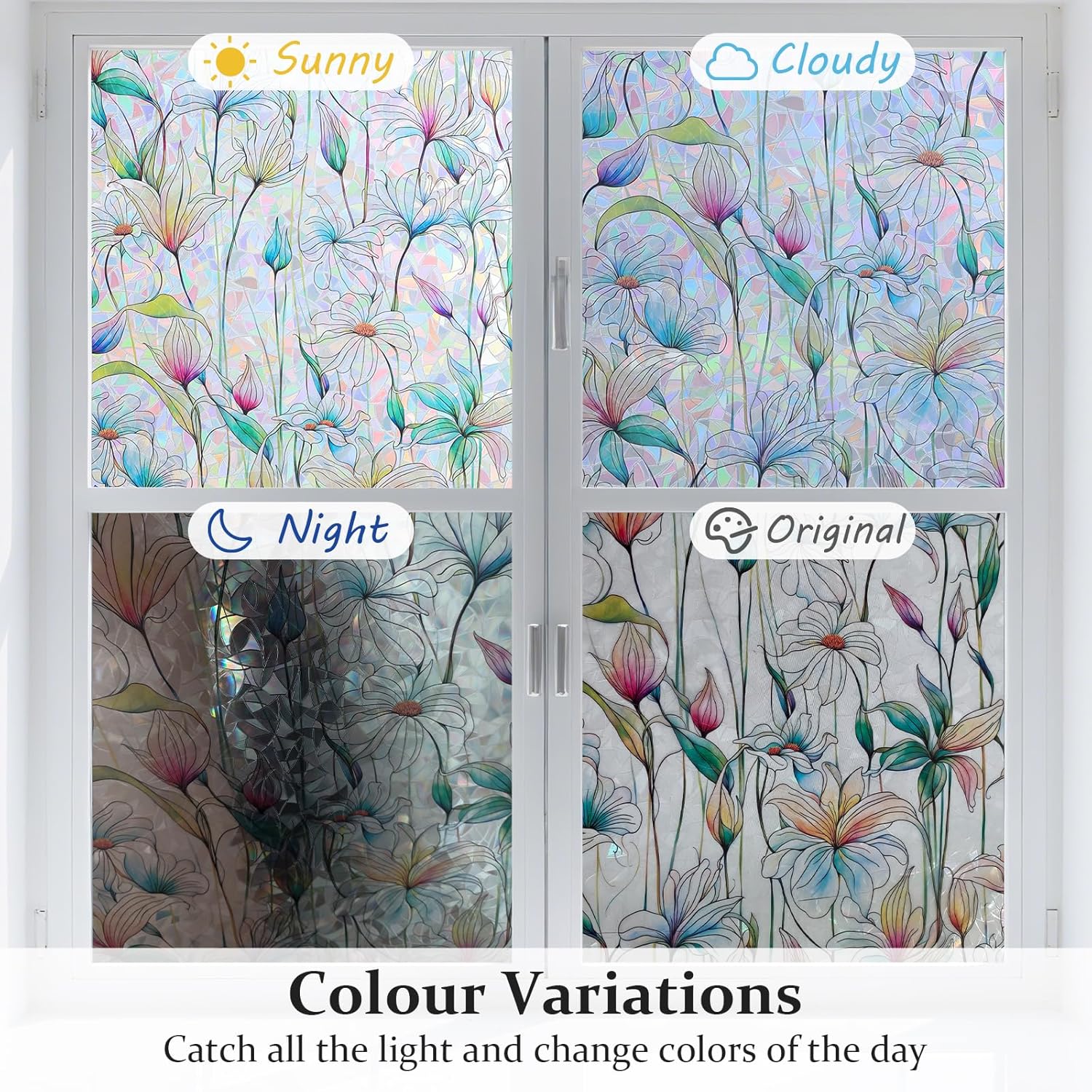 - 【Elegant 3D Design With Rainbow Light】Features a textured magnolia floral pattern. this window privacy film creates rainbow visual effect when sunlight shines through and brings unique decoration on your windows