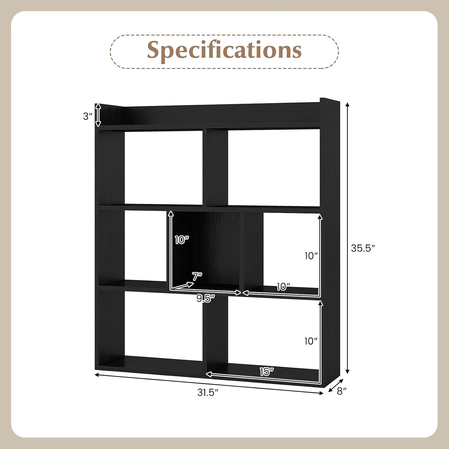 Giantex 7 Cubes Bookshelf, Free-Standing Wooden Bookcase, 4 Tier Home Display Shelf, Horizontal Storage Unit w/Anti-Toppling Devices, Open-Back Display Rack for Study, Living Room (1, Black)