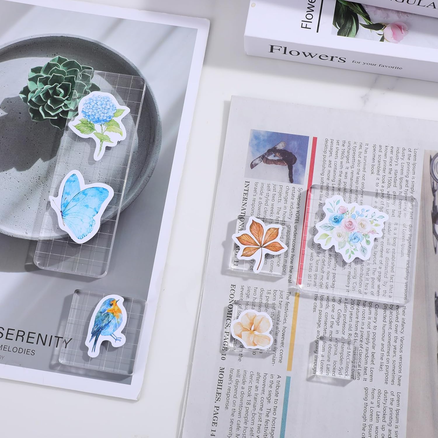 6 Pcs Acrylic Stamp Block Acrylic Blocks for Stamping Clear Tools Decorative Stamp Blocks with Grid and Grip Scrapbooking Craft Making, Decorative DIY Essential Stamping Tool