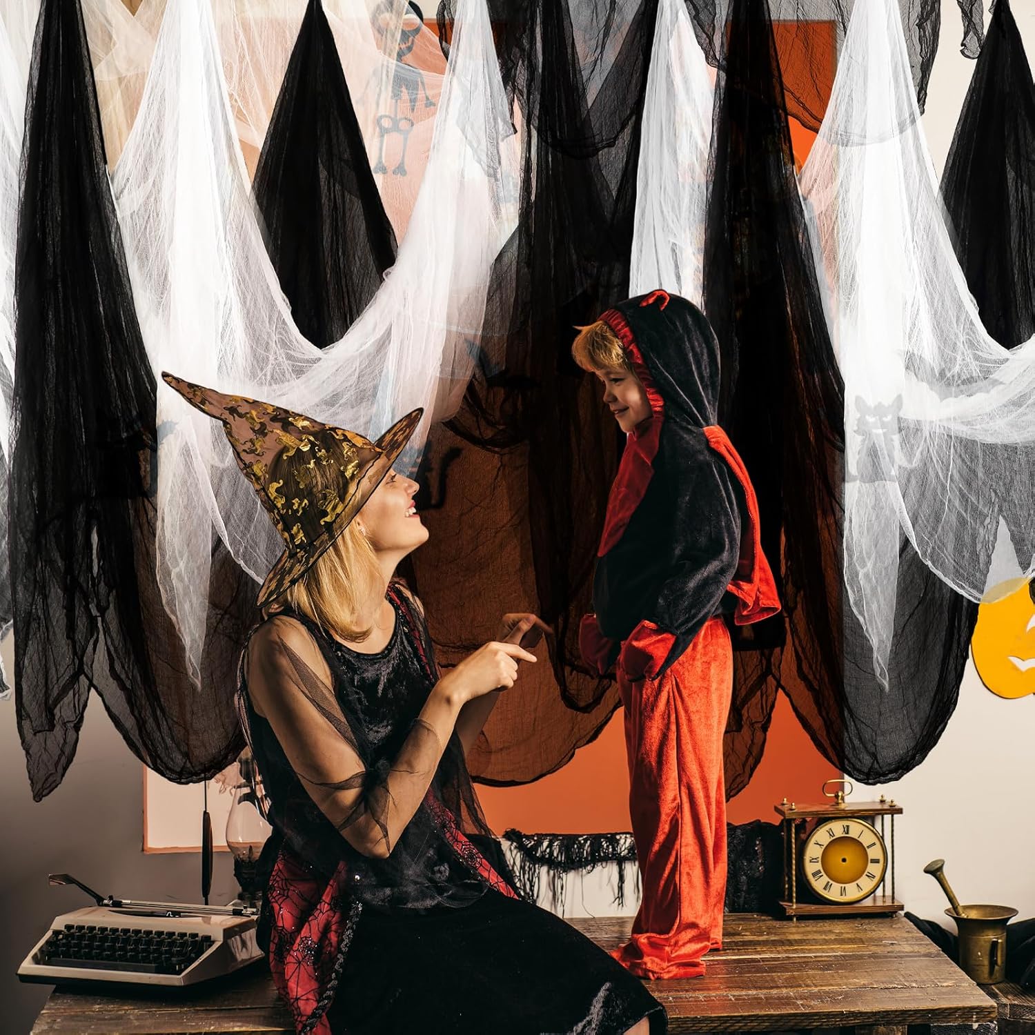 Boao Halloween Cheese cloth 39.37 x 196.85 Inch White Black Cheesecloth Roll for Crafts Large Cotton Muslin Gauze Fabric for Halloween Outdoor & Indoor Spooky Decoration