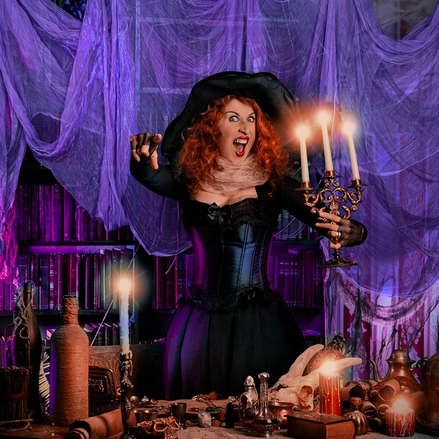 - Horror Large Halloween Cheese Cloth: this large Halloween cheese cloth measures 39.37 x 393.7 Inch, making it an ideal decoration for a fantastically spooky Halloween party; The size alone is commanding, covering a large area with a ghostly vibe, the spectral purple color adding to the eeriness; You can entangle your guests in a web of horror and make your party the talk of the festival