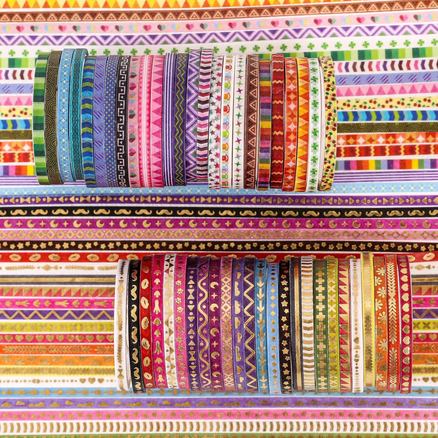 - This pack of 50 rolls, with 1/8" (3mm) in width and 10' (3m) in length. 25 rolls of them are with gold foiled. These different series and sufficient quantity washi paper stickers can meet your use and replacement.