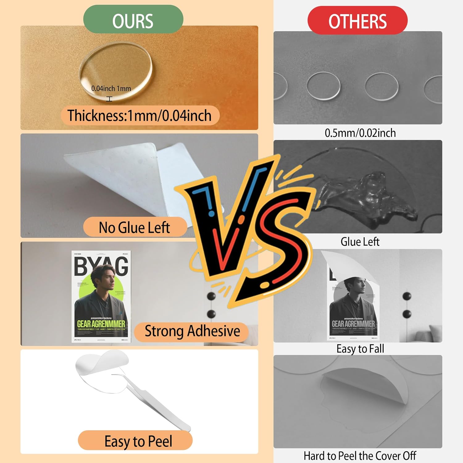 - Strong Two Sided Mounting Adhesive Tape: Our 1mm thick clear adhesive dots has more stronger adhesion(others are 0.5mm thick), firmly to various surfaces without damaging them.