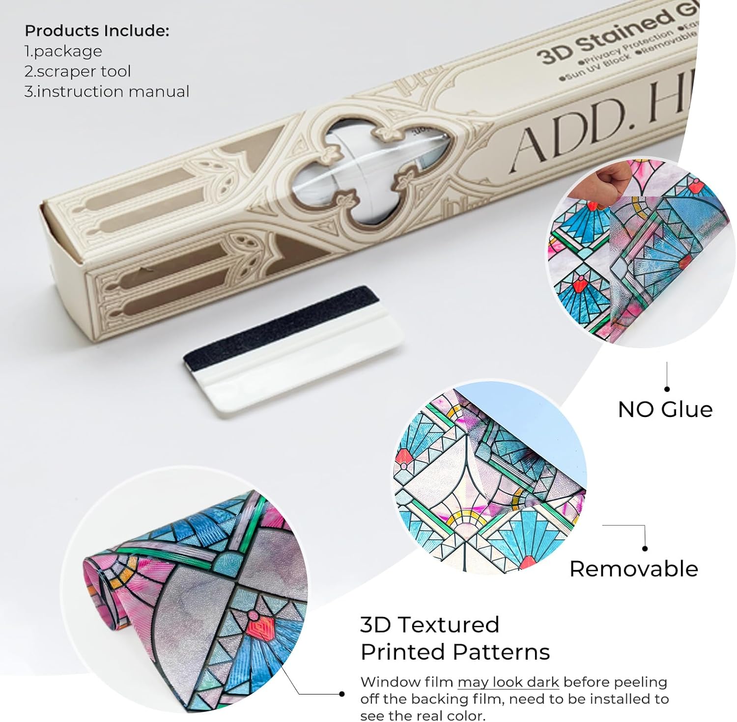 - Durable and Long-Lasting Quality -Privacy window film boasts durability with scratch-resistant, fade-proof materials, preserving its attractive design for years. Its vivid colors and patterns enhance any window with lasting elegance.