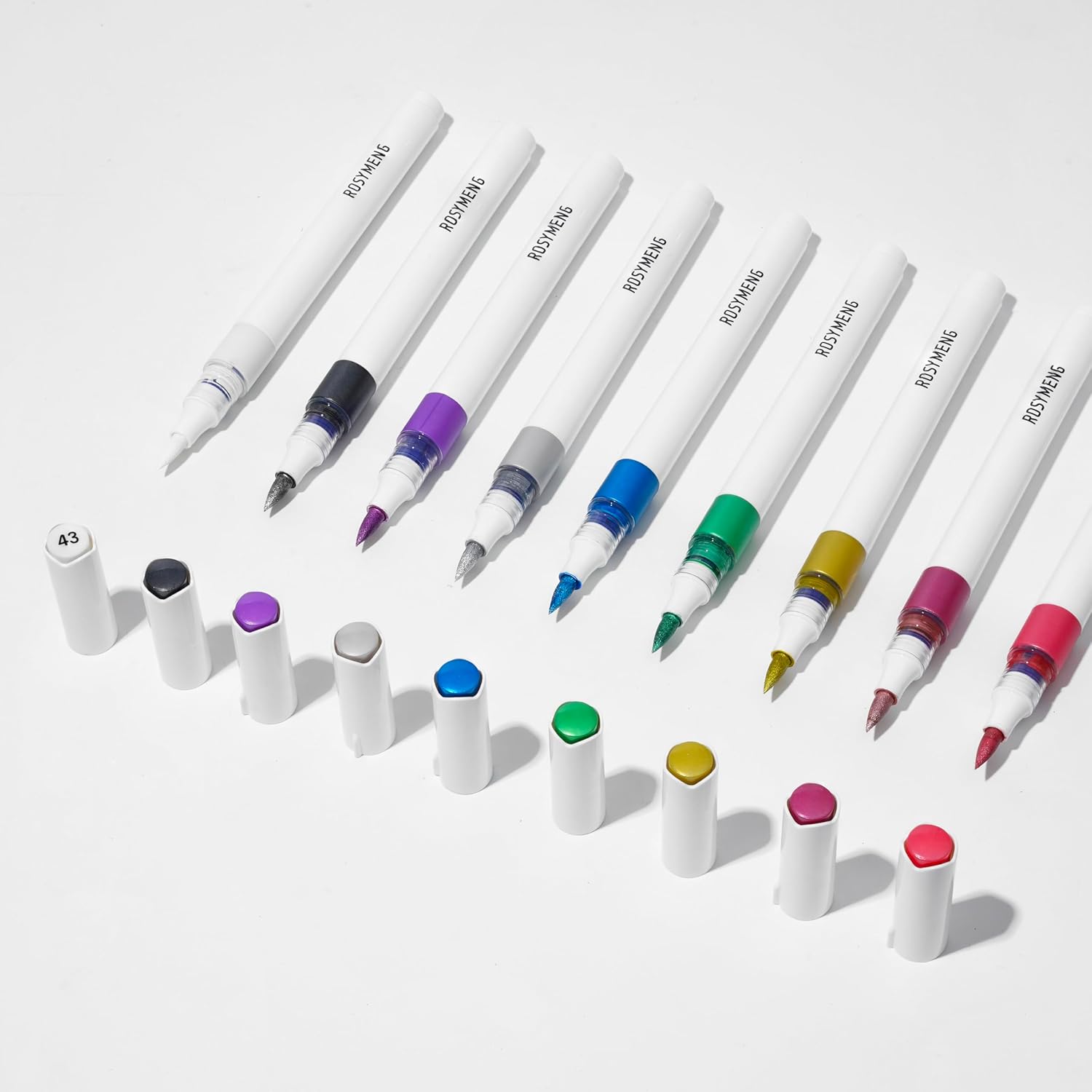 ROSYMENG 9 Metallic Color Acrylic Paint Pens,Quick-Drying Waterproof Acrylic Paint Markers, Soft Brush Tip Acrylic Markers for Canvas, Rock Painting, Wood, Stone, Glass, Ceramic, Fabric Painting
