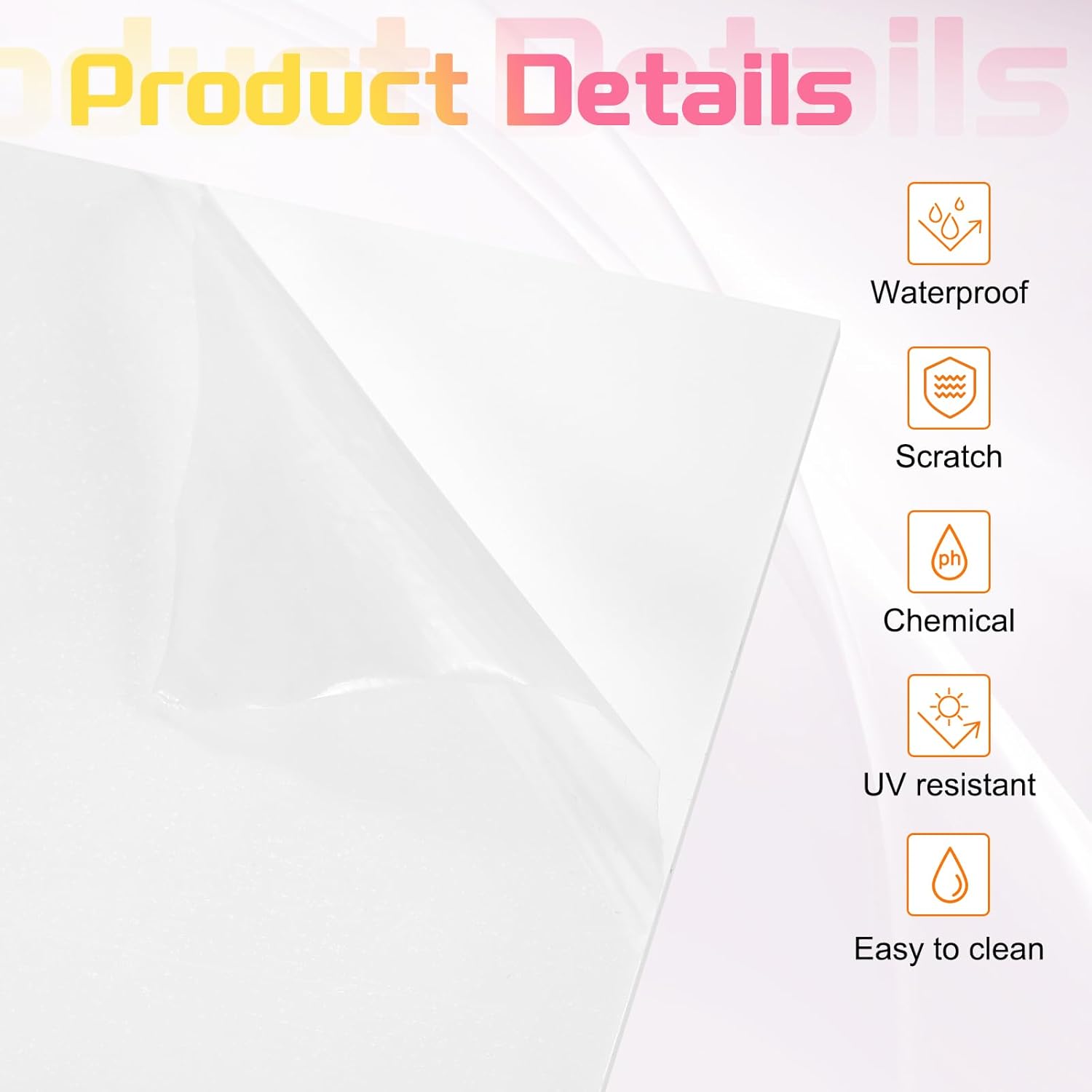 - Color:White;Size: 200x200mm/8 x 8 Inch (L*W);Thickness:3mm/0.12 inch;Material: Acrylic;In the package of: 3Pcs x colour plastic sheets.