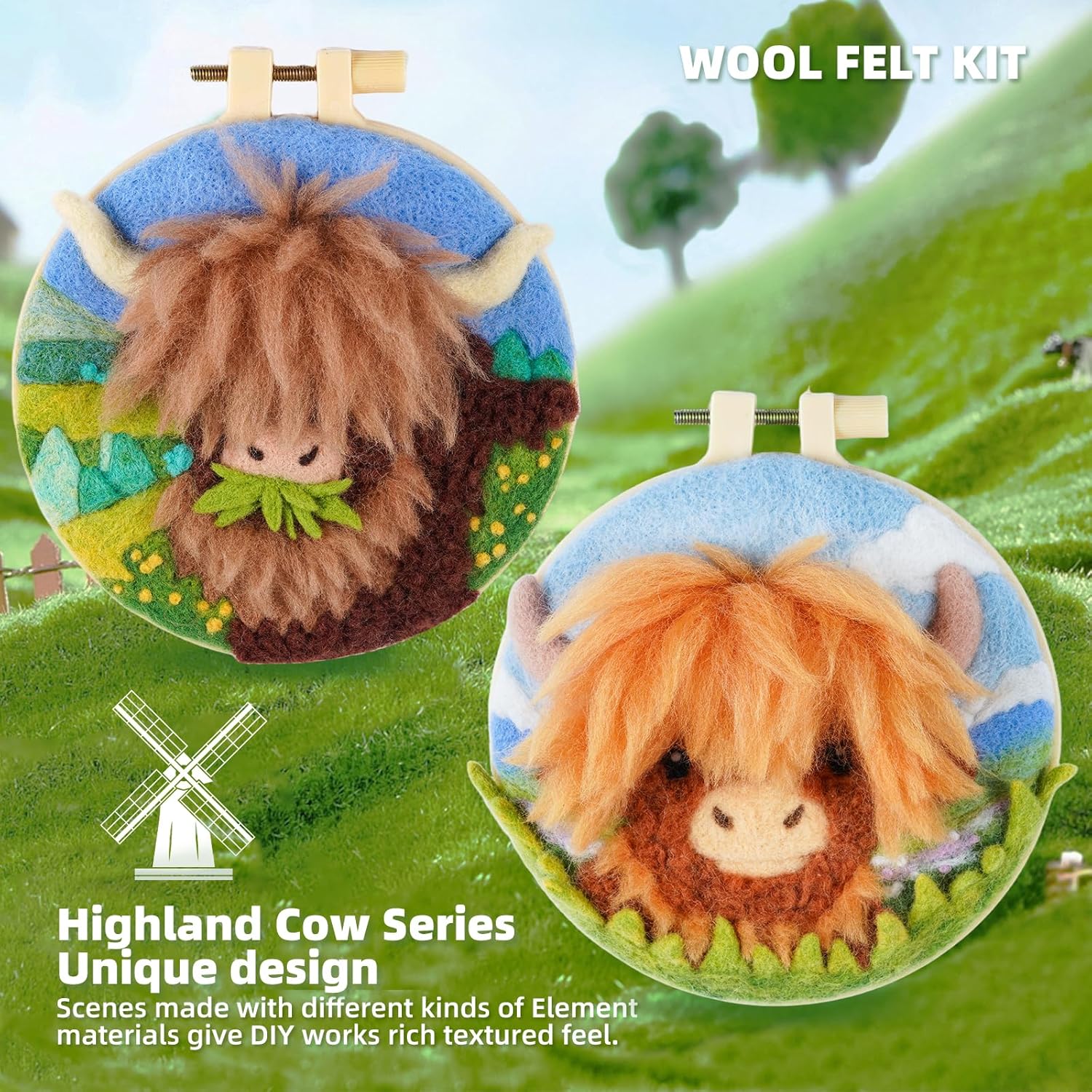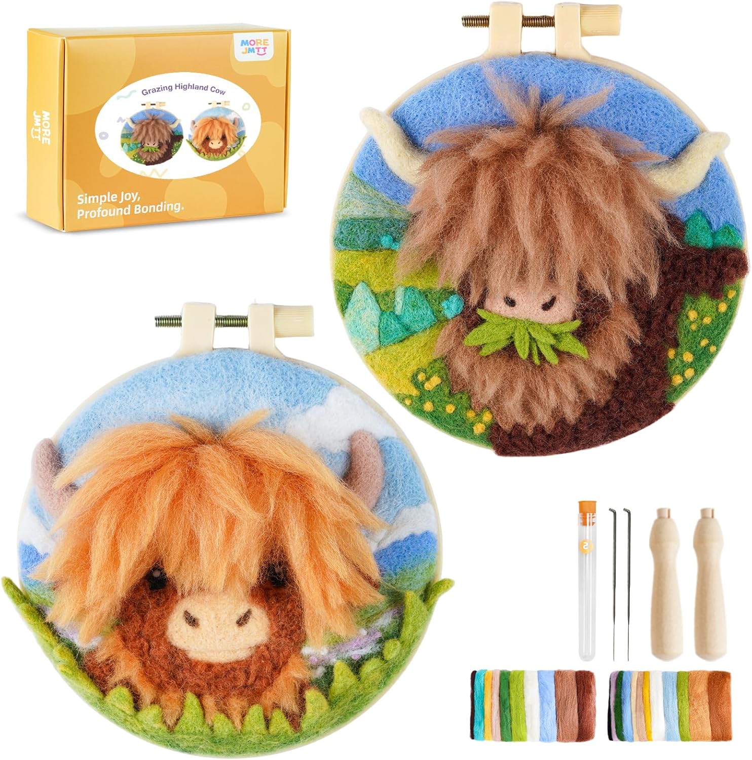 Needle Felting Kit,Embroidery kit for Beginners,Punch Needle Kits Adults Beginner,Punch Needle kit for Beginners, Includes All Tools and Materials,Easy to Follow Instructions and Videos(Highland Cow)