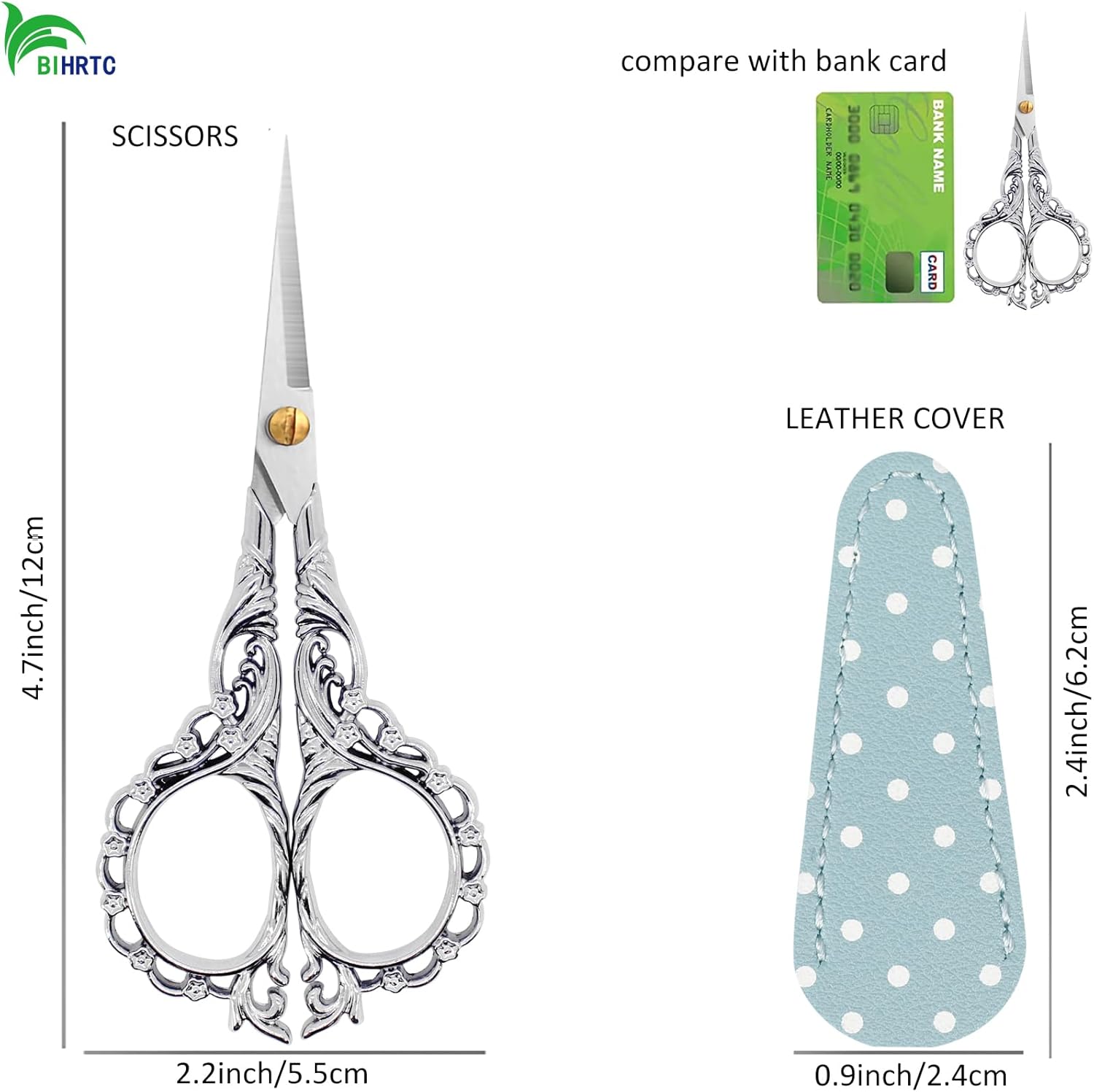 BIHRTC 4.5Inch Sewing Embroidery Scissors Professional Grade Shears with Artificial Leather Cover Stainless Steel Scissors for Office Craft Cross Stitch Needlework DIY Tools Knitting