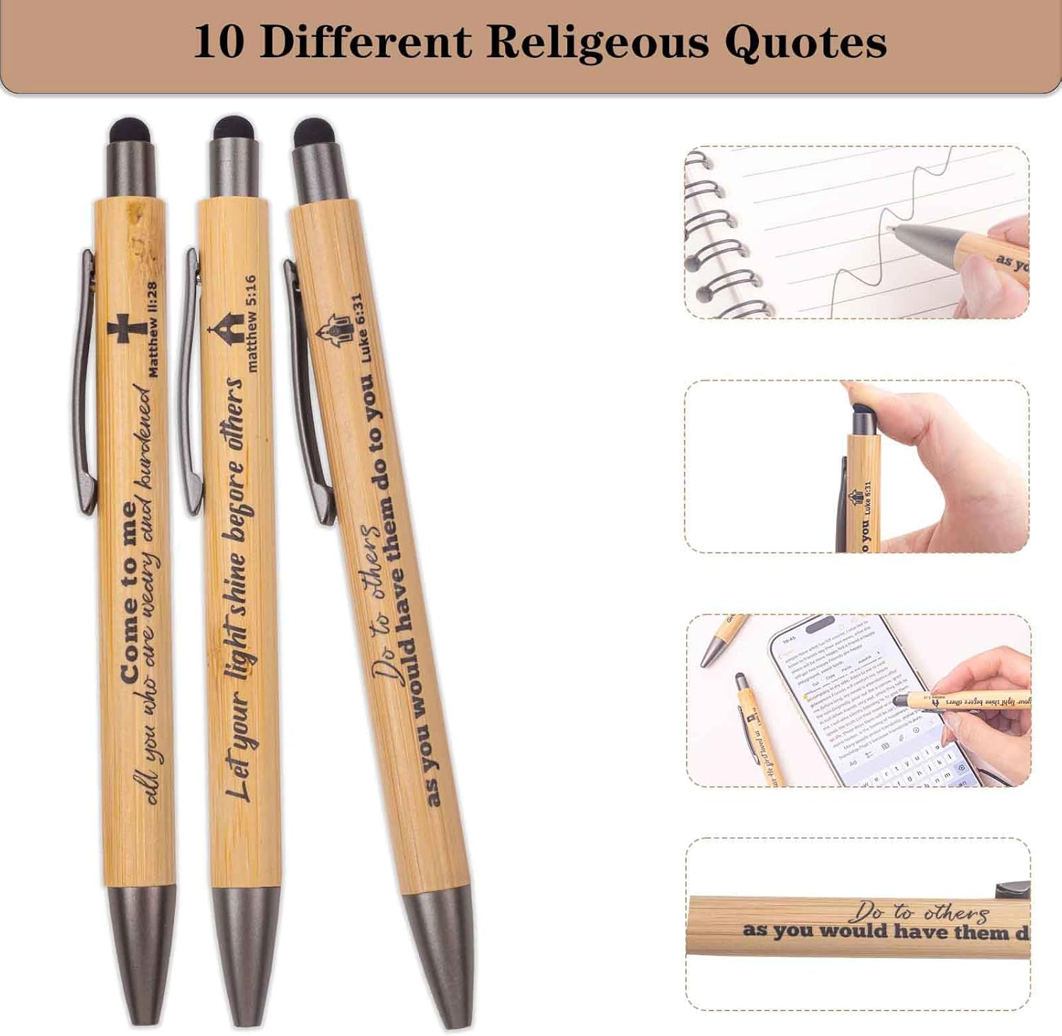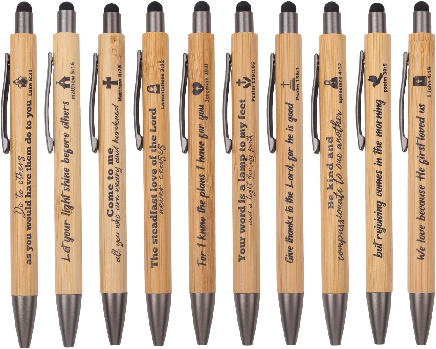10 Pcs Christian Inspirational Stylus Bamboo Ballpoint Pens Set Bible Pens Bulk Christian Pens Gifts for Church Women Men Sunday Party Teacher Christians Supplies