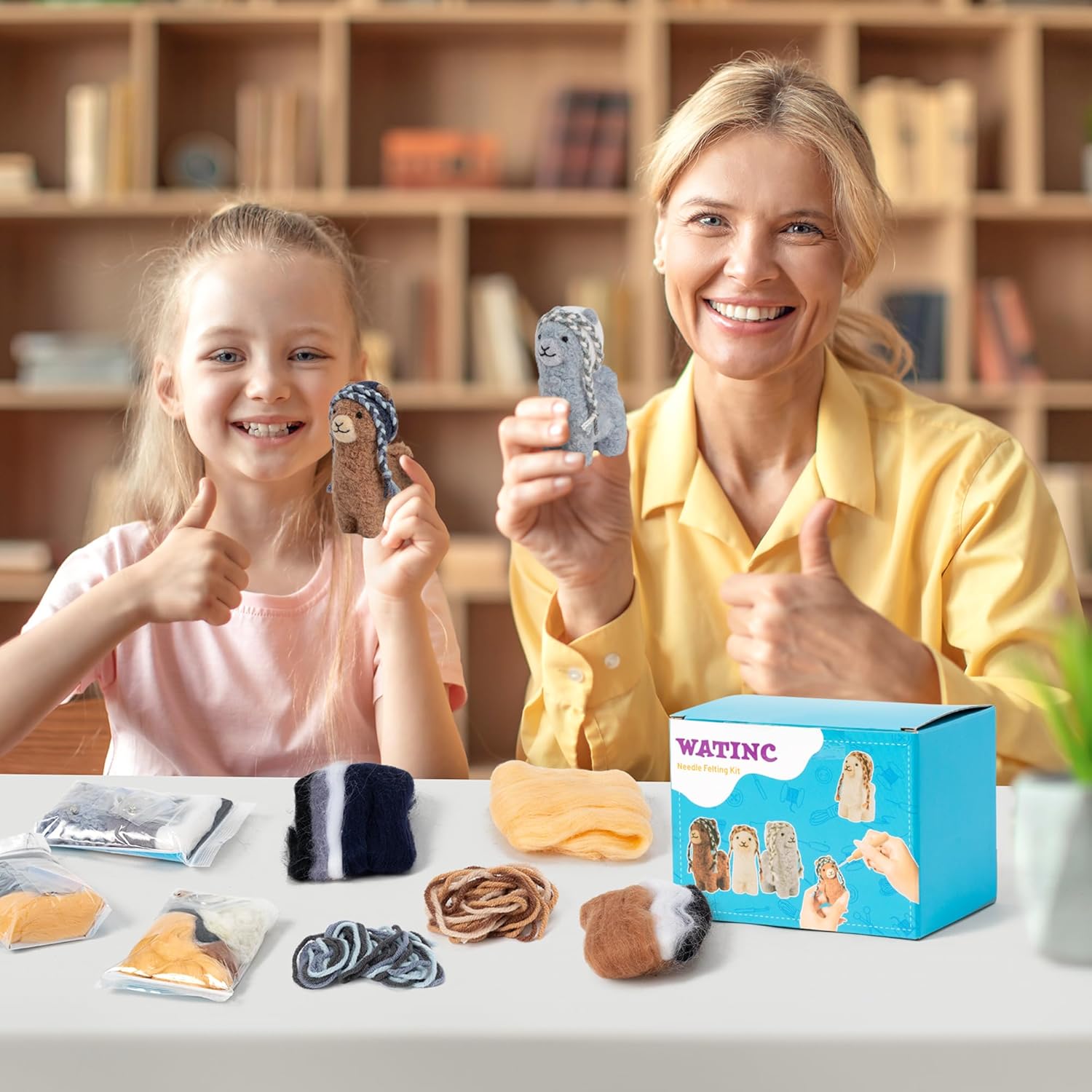WATINC Needle Felting Kit - 3 Set Unique Different Cute Doll Wool Felt Needle Tools Foam Pad Instruction, DIY Home Decoration Craft Party Supplies for Art Work Starter Beginners (Alpaca)