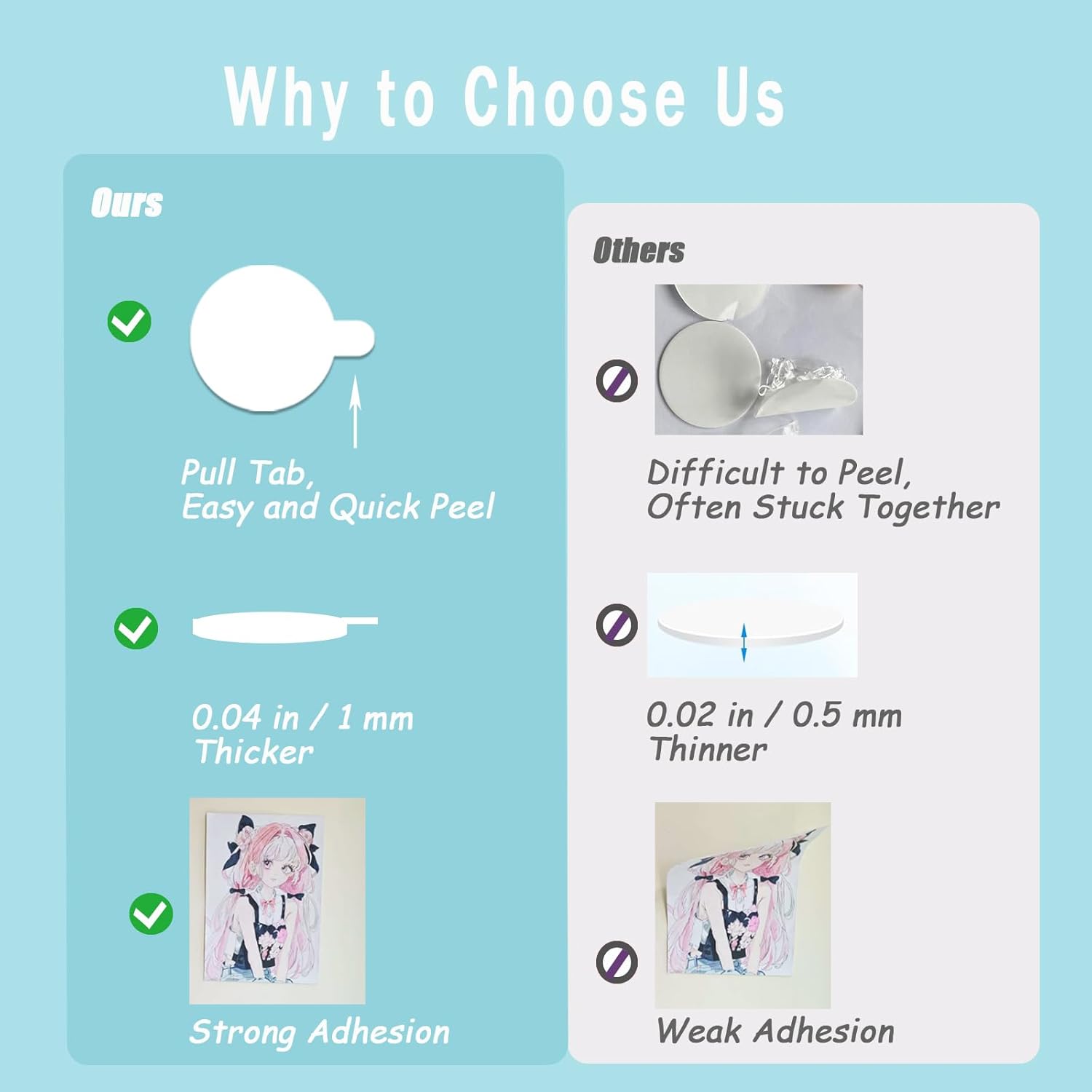 - 【Upgraded Handle Design for Easy Use】Each round sticky glue tab has a white protective film with an easy-to-grip handle for quick and easy peeling. Simply stick the double-sided sticky dot where needed, peel off the protective film and press to secure. No extra tools, no punching, cutting, etc. required!