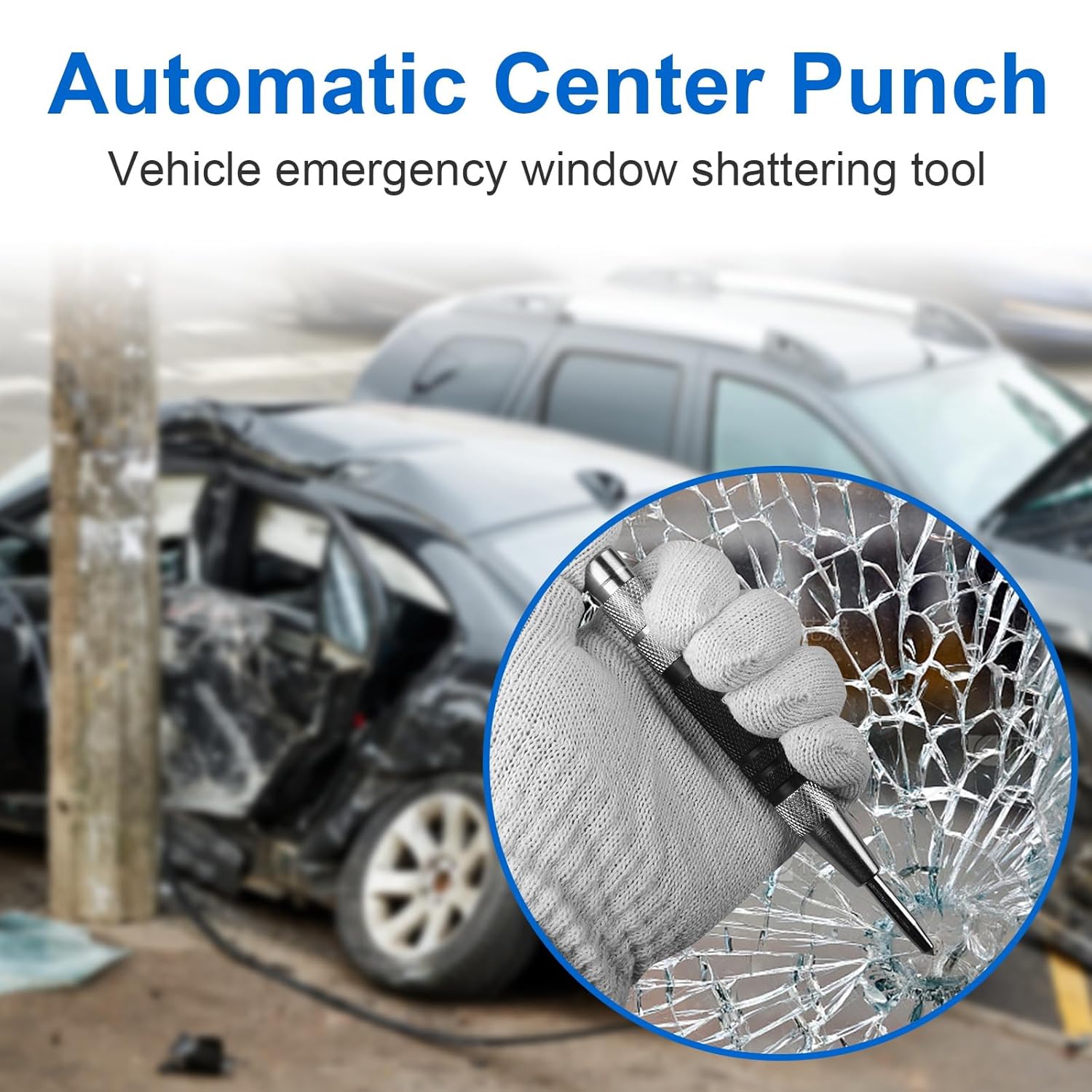 - [Wide Applications] This automatic center punch works for marking in scenarios like furniture installation and machine maintenance, and fits drilling on steel, iron, plastic, wood, walls, etc. It also acts as an emergency window-breaker for vehicles. Lightweight, durable and all-in-one—ideal for your toolkit.