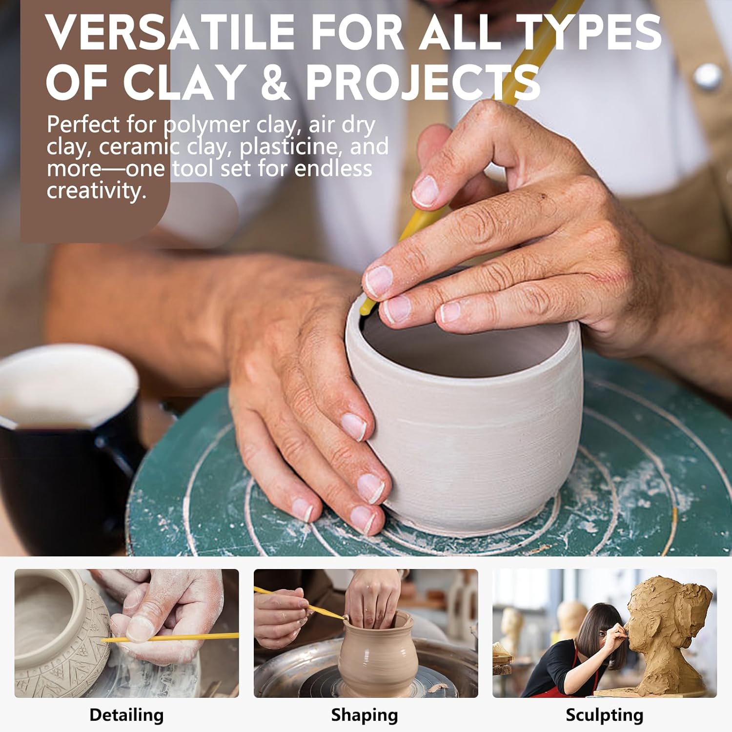 - ALL-IN-ONE POTTERY TOOL KIT: This thoughtfully assembled 18-piece pottery tool kit includes 14 clay sculpting tools for carving, molding, embossing, and shaping, along with 4 specialized clay tools perfect for crafting delicate flower petals. Whether you're working on a sculpture, handmade pottery, or fondant decorations, this set gives you the variety and precision you need to explore your creativity.