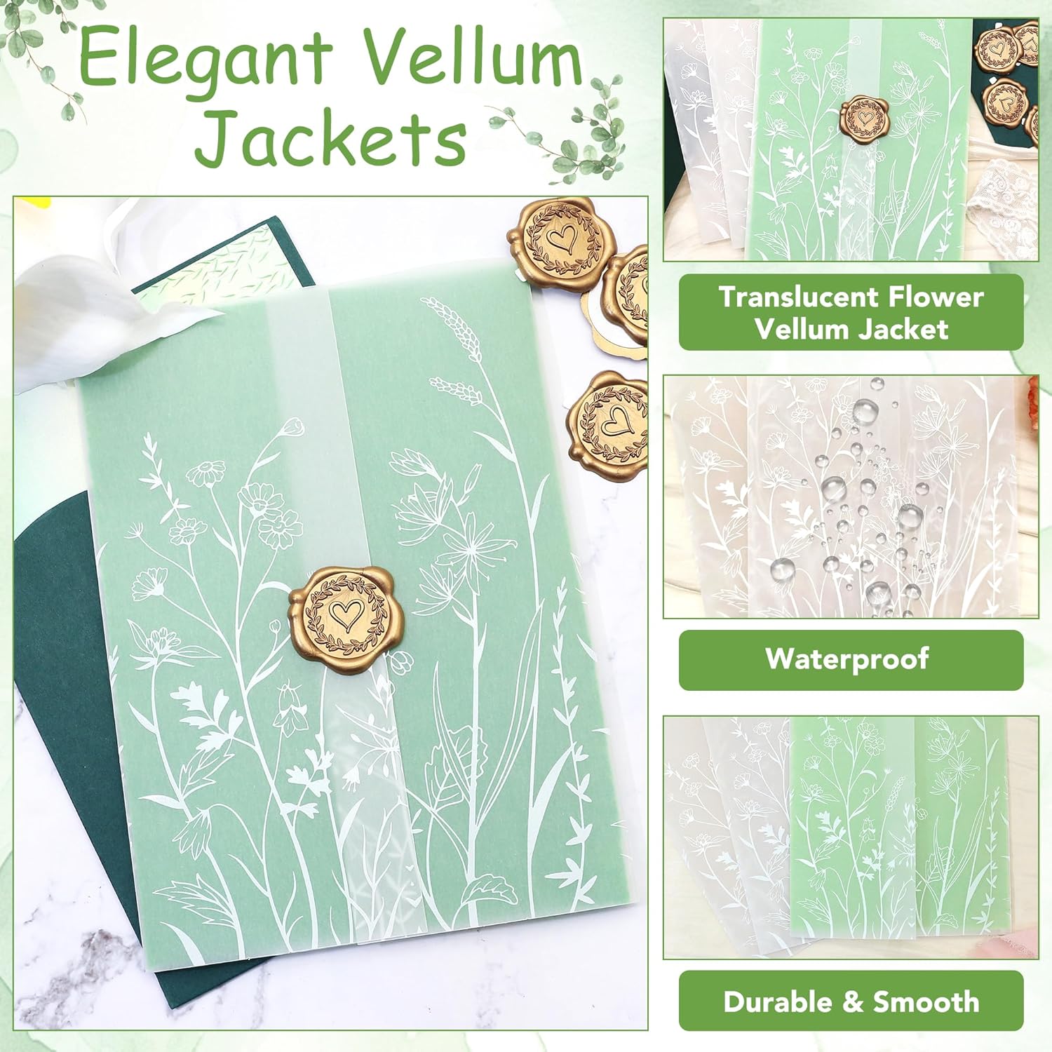 - Exquisite DIY Options: Package includes 100 packs of white wildflower vellum jackets. You can add stickers, wax seals or ribbon decorations according to your preferences to make your invitations unique and charming