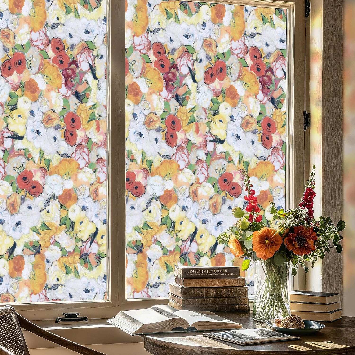 - Elegant Design of Oil Painting Flowers: Transform your windows with our delicate and elegant oil painting flowers patterned glass window film. This decorative film uses simple, bold lines to construct a pattern blending oil painting flowers, providing privacy while adding a touch of classical elegance to any space. It makes the perfect stylish addition to your home or office décor.