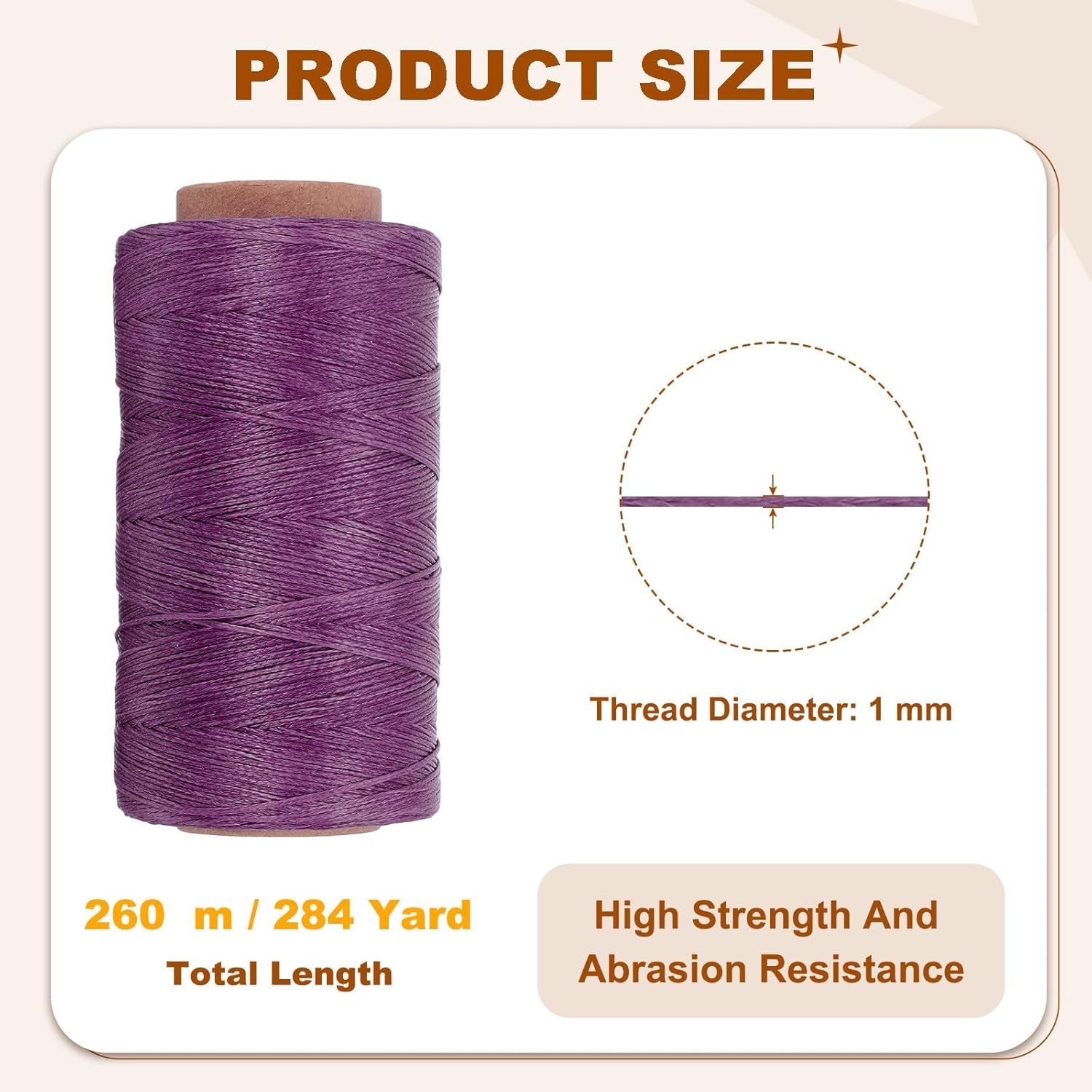 - Total Length: 260 m / 284 Yard; Thread Diameter: 1 mm / 0.039 inch; Thread Thickness: 0.5 mm / 0.02 inch; Packing List: 1 Roll x 150D Flat Waxed Thread
