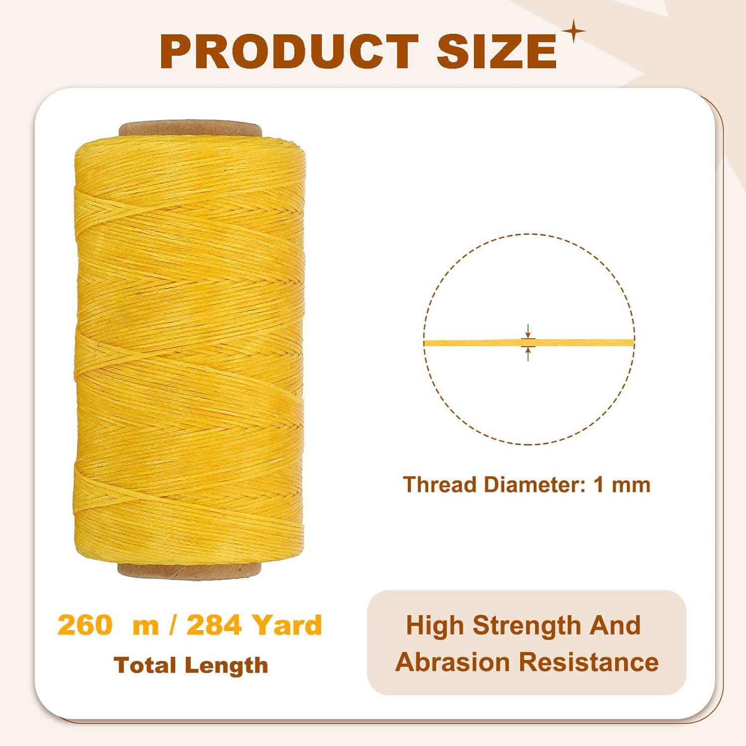 - Total Length: 260 m / 284 Yard; Thread Diameter: 1 mm / 0.039 inch; Thread Thickness: 0.5 mm / 0.02 inch; Packing List: 1 Roll x 150D Flat Waxed Thread