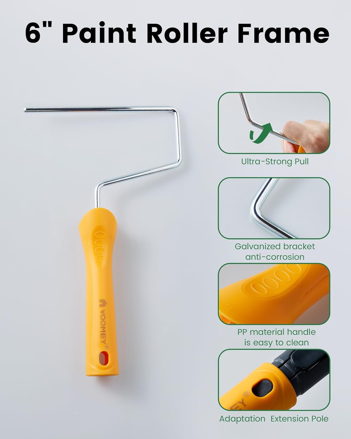 - High Density Foam Paint Roller: The 6 inch high density foam paint roller absorbs and releases paint twice as effectively as regular rollers, providing smooth and even coverage without streaks. Includes 6pcs small paint roller covers that are durable, elastic,and easy to replace