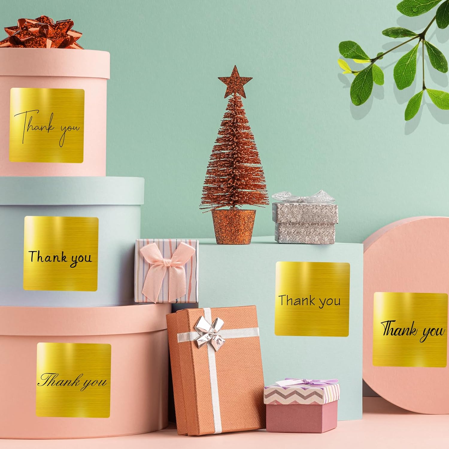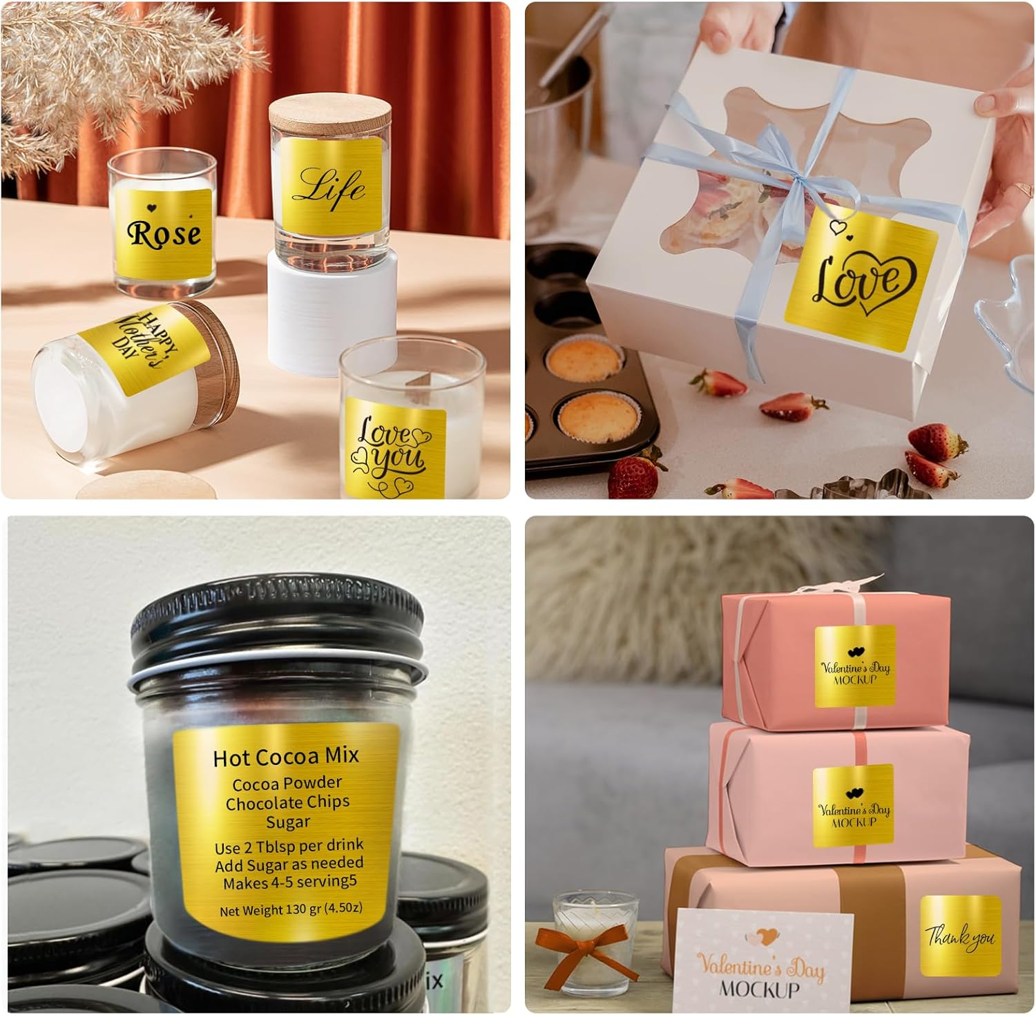 Square Thermal Labels Stickers 3" x 3", Gold Thermal Square Stickers Labels, Glitter Self-Adhesive Direct Thermals Label for Small Business- Holographic Gold