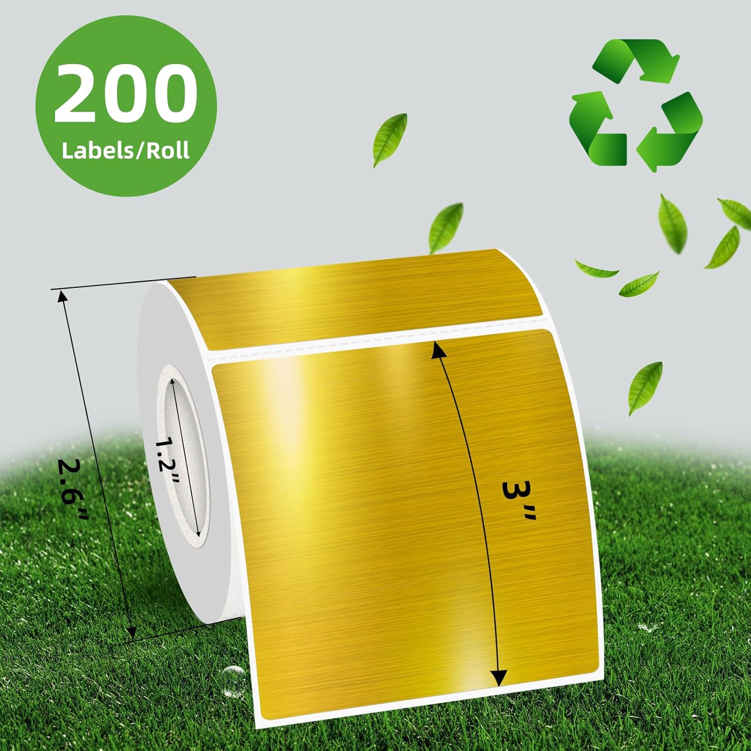 - Gold Square Holographic Thermal Labels- 3 X 3 inch, 200 Labels/ Roll, Perforation Line Design
