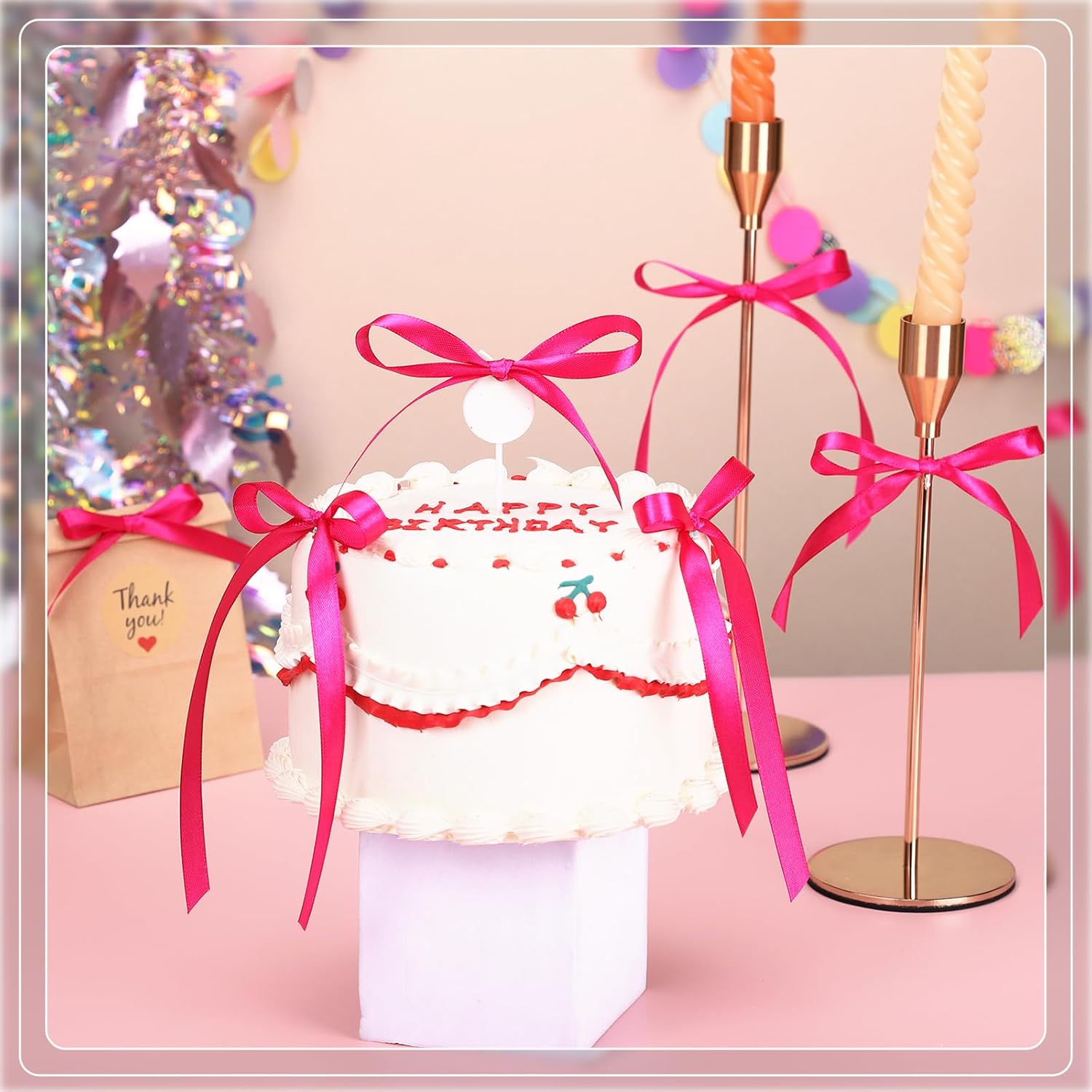 - 【Wide Application】Hot pink ribbon can be used to wrap gifts and make your gifts look more beautiful. In addition, the pink ribbon is also suitable for wedding decoration, balloons, wreaths, hair bows, cake packaging, craft project, home decoration, etc.