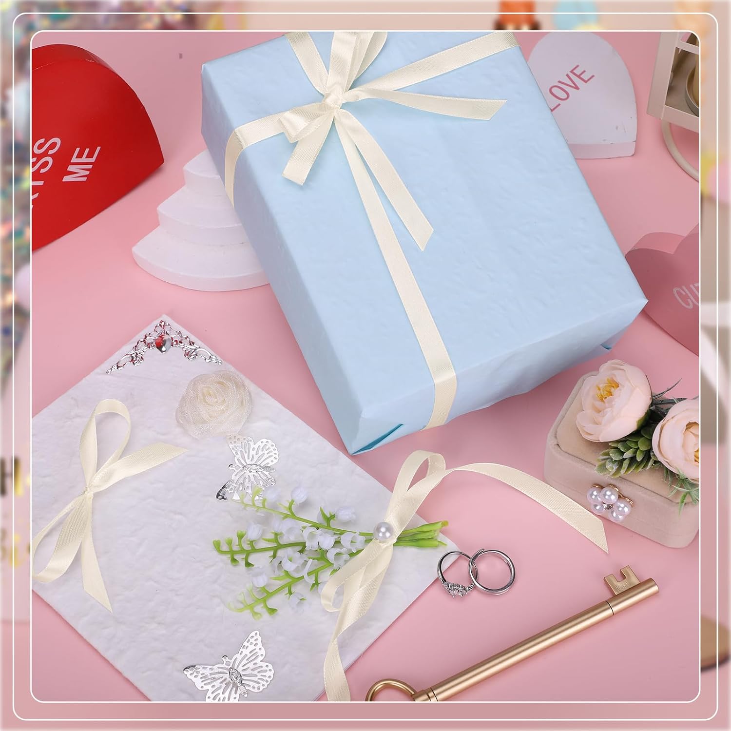 - 【Use Occasions】Ivory satin ribbons can be used for Important wedding, brings a kind of romance about love, and it also suitable for Halloween/Christmas /Easter/Valentine's Day/Graduation season gift wrapping or other decorations.