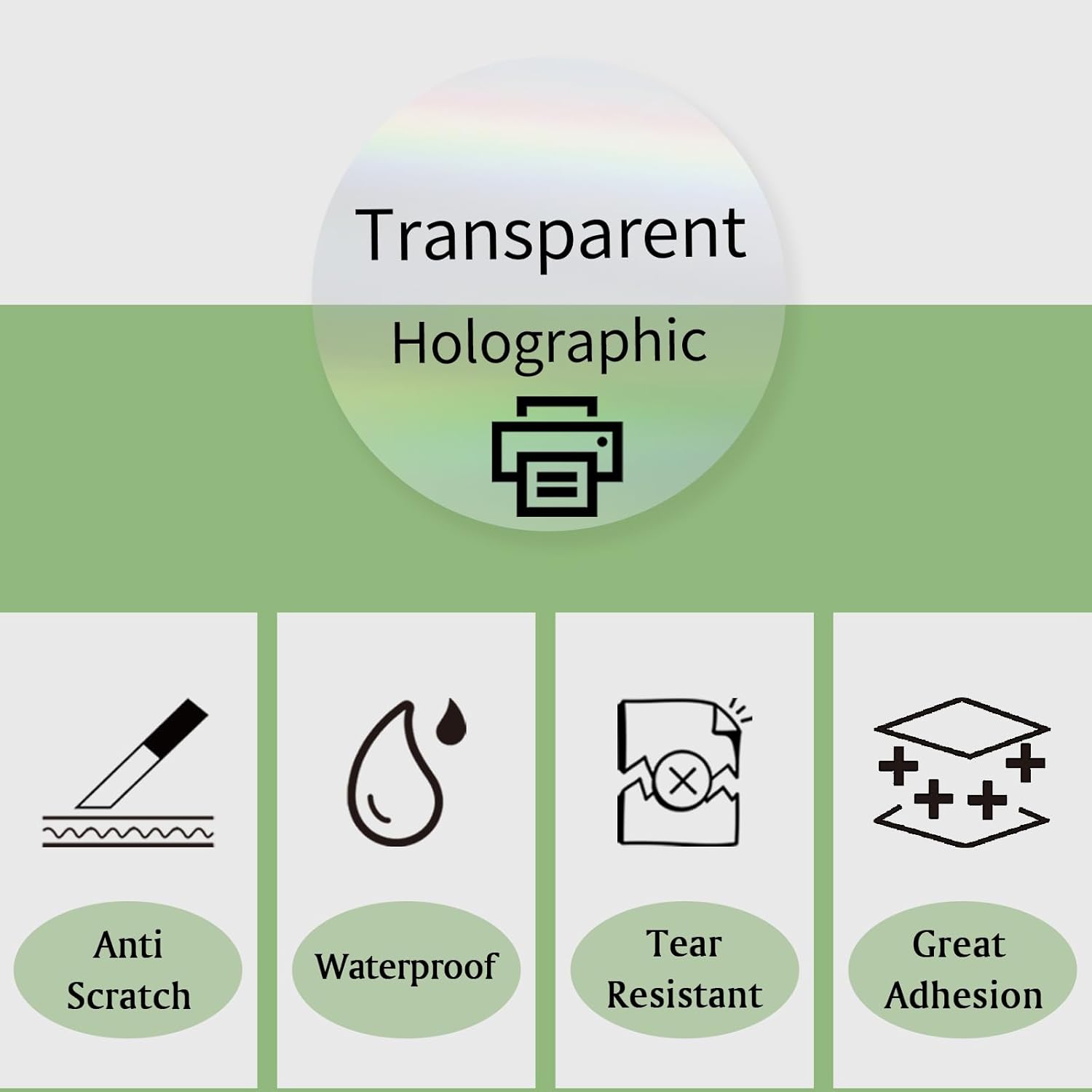 - Transparent Holographic Thermal Label, The color of the surface of the sticker can be changed under the light with the move, which is beautiful and charming