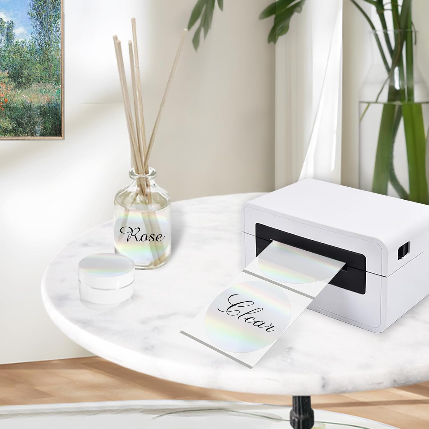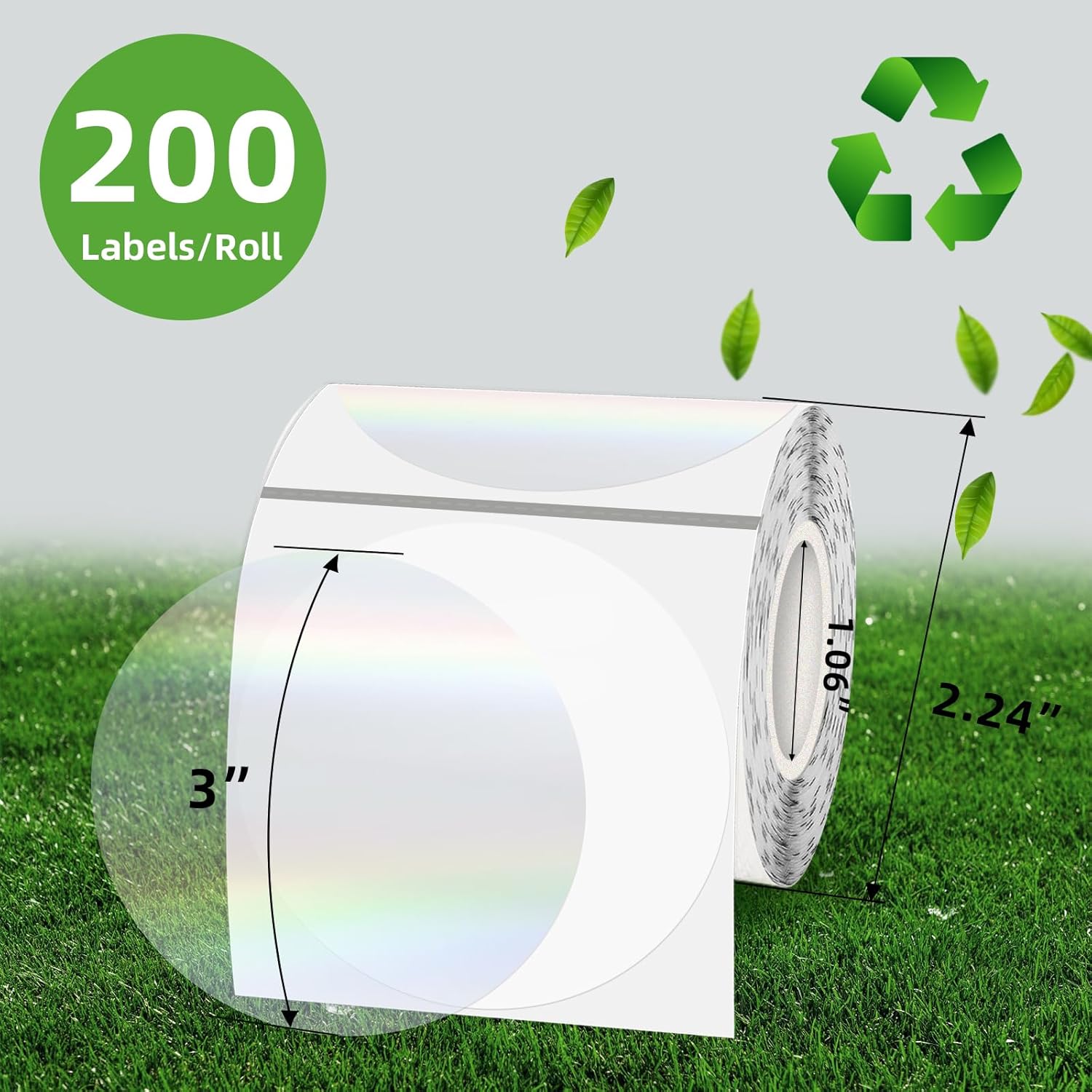 - Package: 3" Round Transparent Holographic Thermal Sticker Labels, 200 Labels/Roll. Clear labels for thermal printer, No ink toner or ribbons are needed