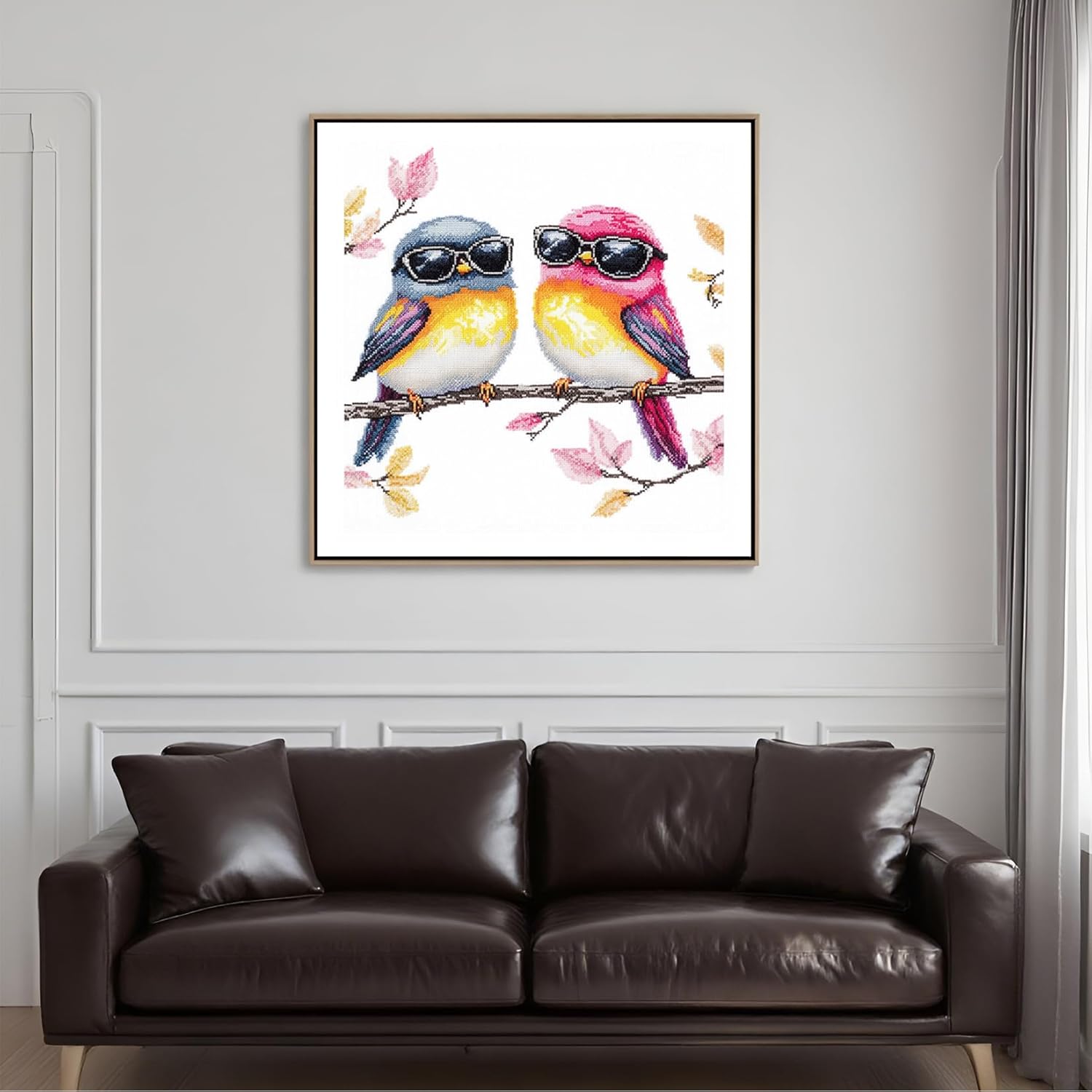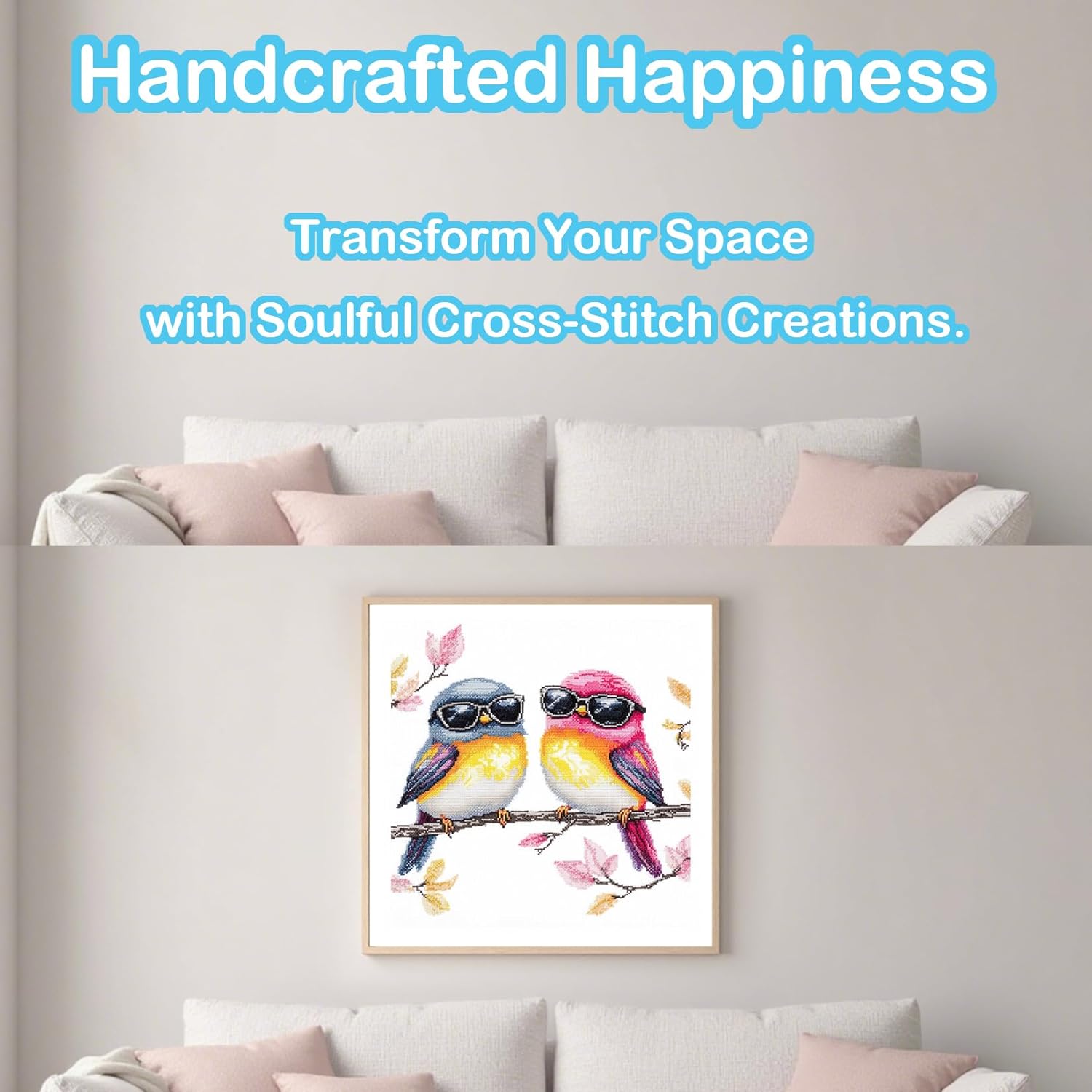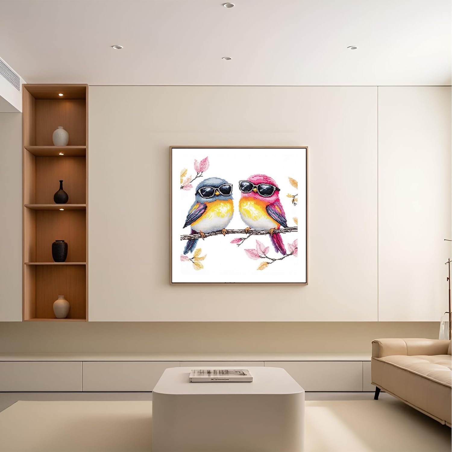 51buyoutgo 11CT Stamped Cross Stitch Kits for Adults - 12x12 in Embroidery Kit with Funny Easy Washable Colorful Birds Pattern, Pre Printed Fabric, Fit for DIY Home Decor, Mom Gifts & Stress Relief