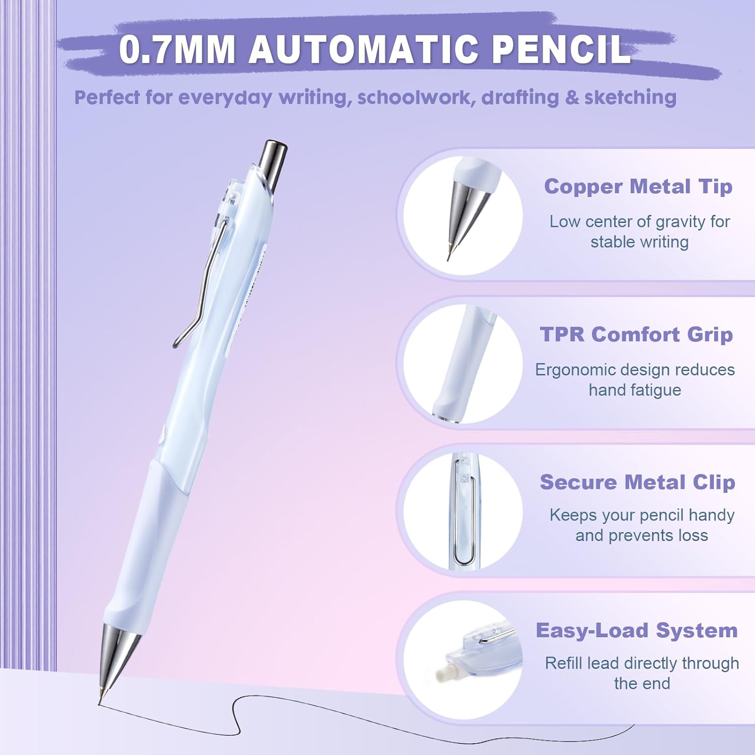 - 📎 【Easy-Load Design & Metal Clip】 Quickly reload lead through the back end. A strong metal clip keeps your pencil attached to notebooks, pockets, or clipboards at all times.