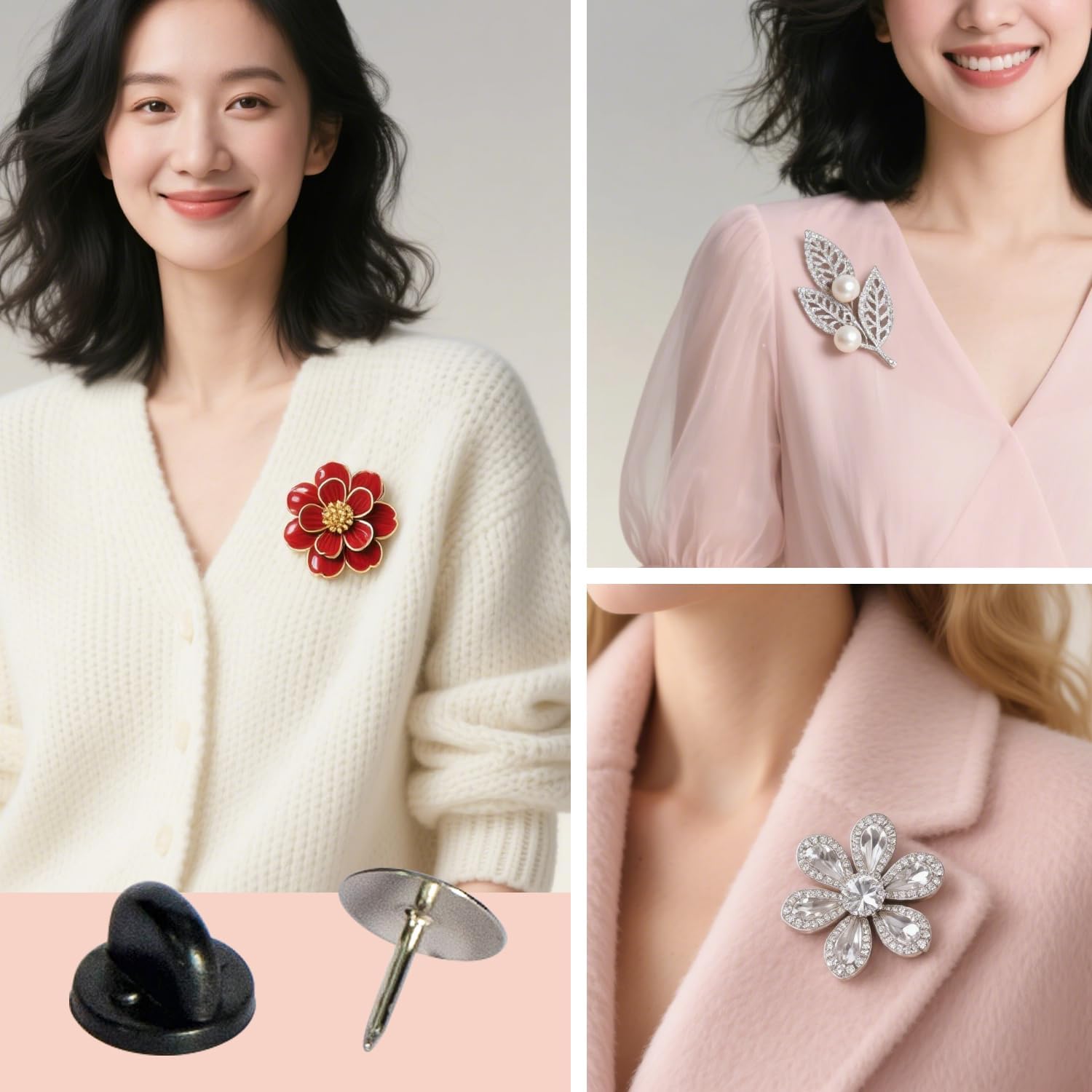 - The rubber clutch has a diameter of 11 mm, while the pin itself measures 10 mm in diameter and 9 mm in length. This size is just right for practical use. The silver - colored metal lock pin on the back is small and low - key, adding a touch of elegance without being overly conspicuous. It is suitable for a variety of formal and casual occasions.