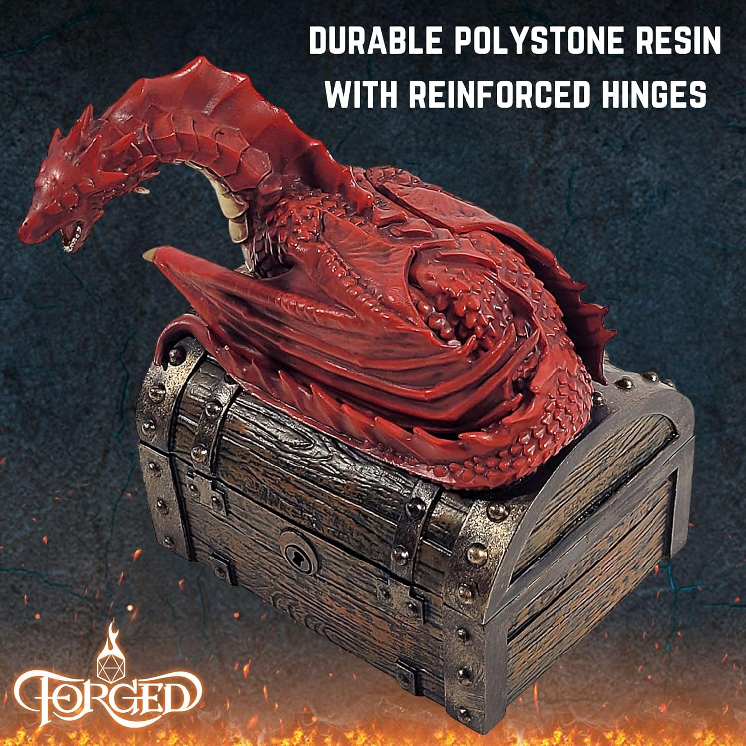 Forged Dice Co. Wyvern Dice Box with Lock and Key - Dragon Storage Chest Compatible with Dungeons and Dragons, D&D Miniatures, Dnd Accessories - Fits up to 4 Standard Polyhedral Sets - Red