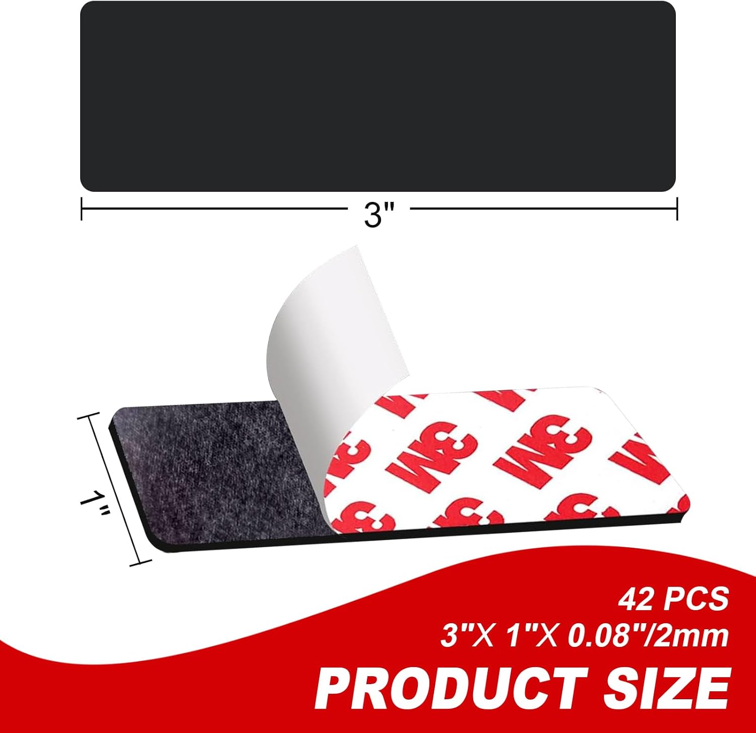 - SIZE AND QUANTITY: 42 pieces flexible magnetic strips with 3M adhesive backing, 3" x 1" each, ultra thick (2 mm) long anisotropic magnetic tape, Add several or more magnet strips for heavier things. We offer flat package so the magnet stay flat for efficiently adhere.