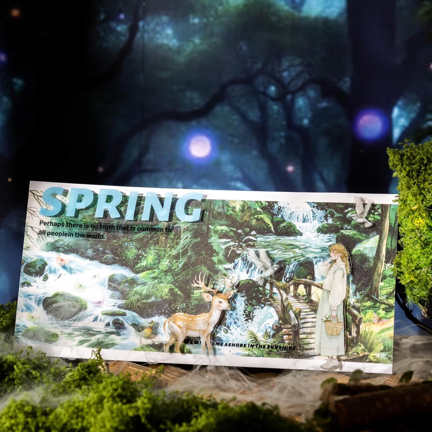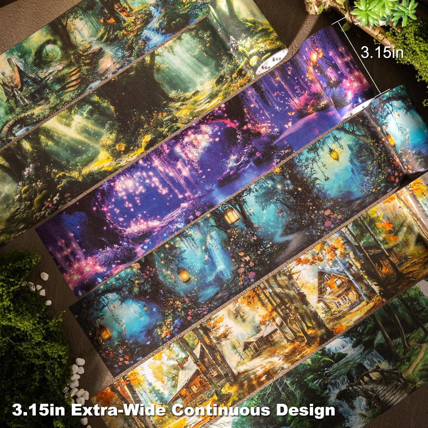 - Whimsical Forest Designs: Features 6 unique washi tape rolls with nature-inspired scenes like cottages waterfalls fairy houses and woodland lights to enrich scrapbook and journal pages with magical storytelling charm