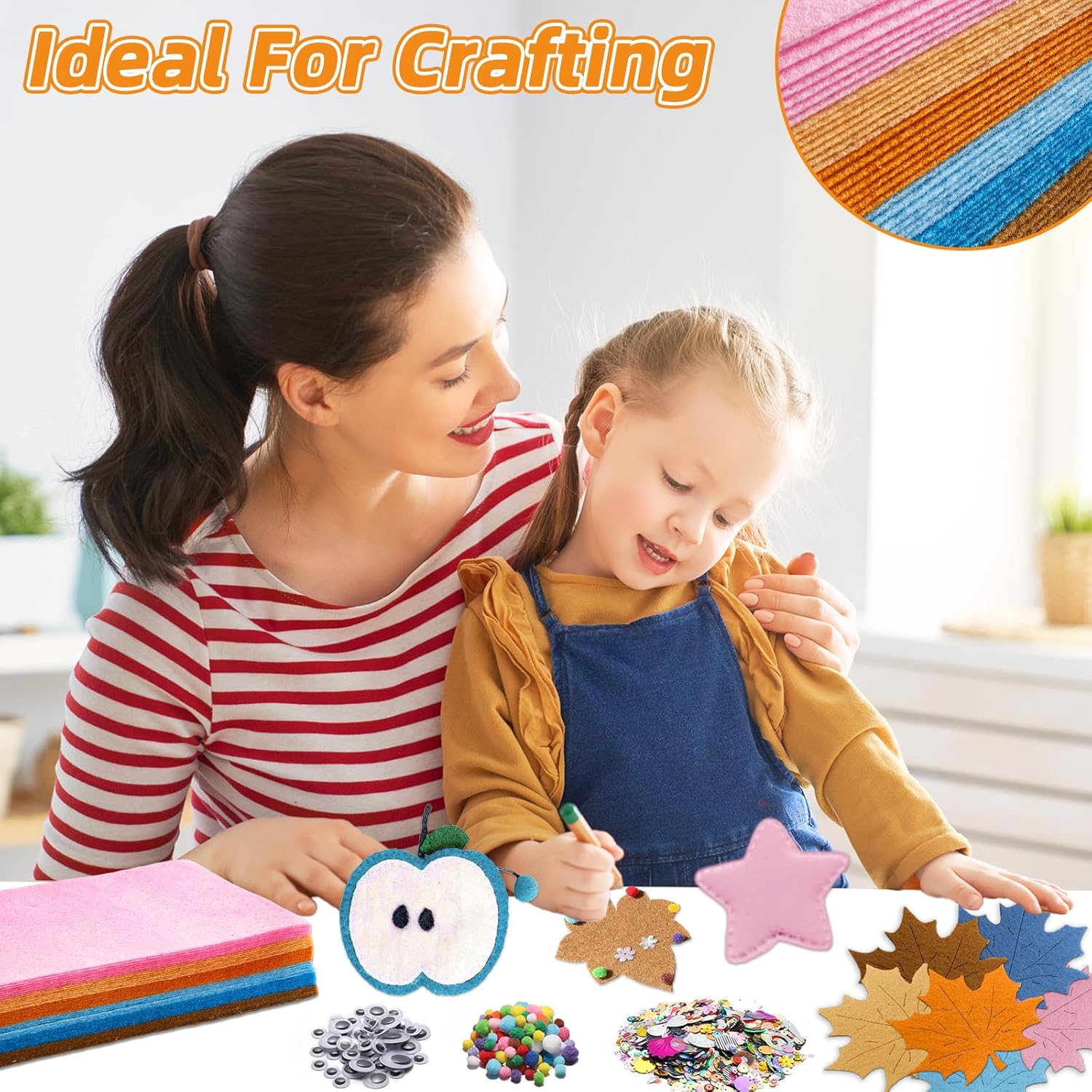 - Assorted Colors & Abundant Supplies: This set includes 42 high-quality boho felt fabric sheets in 6 rich boho-themed shades: brown, orange, blue, light blue, beige, soft pink(20 x 30 cm / 8 x 12 inches). Each color comes with 7 sheets, and you’ll also get a bag of fun wiggle eyes, glitter, and pom poms. Whether you’re creating small accents or large projects, these soft felt fabric sheets provide endless possibilities for your DIY crafting needs.